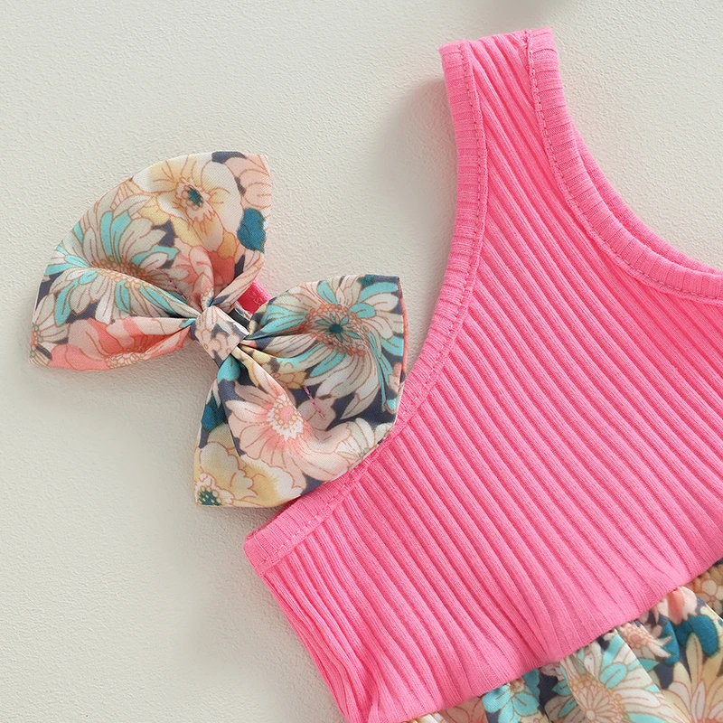 Baby Girl Two Piece Outfits Summer Floral One Shoulder Romper and Stretch Headband Cute Clothes