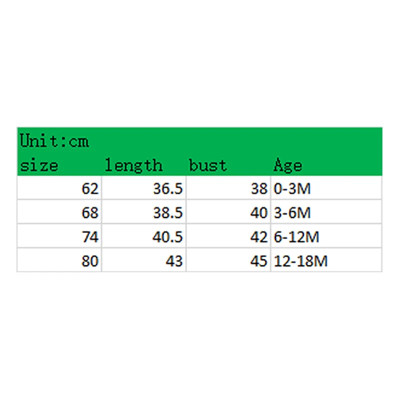 68 Advised Age: 3-6 Months Length: 38.5 Bust: 40