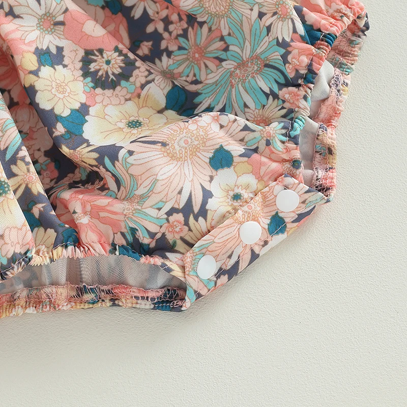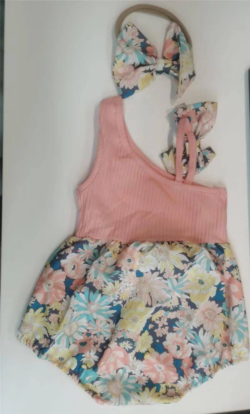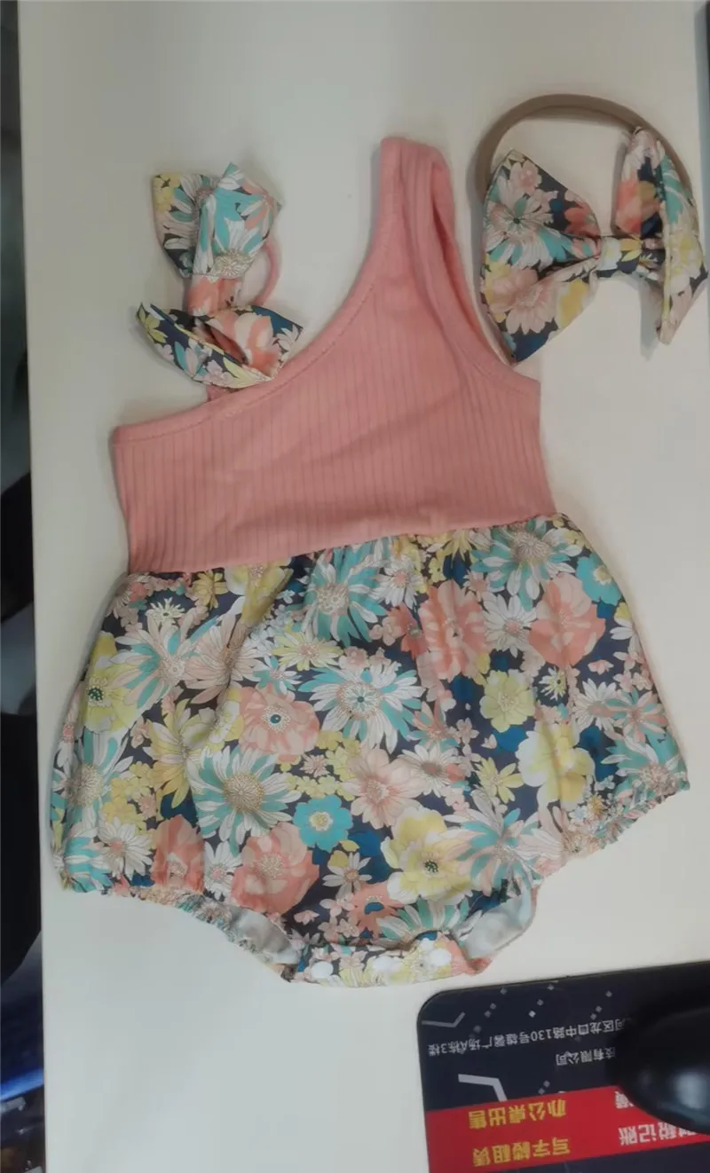 0-18months Baby Girl Summer Bodysuit Floral One Shoulder Romper and Stretch Headband Playsuit for infant girls