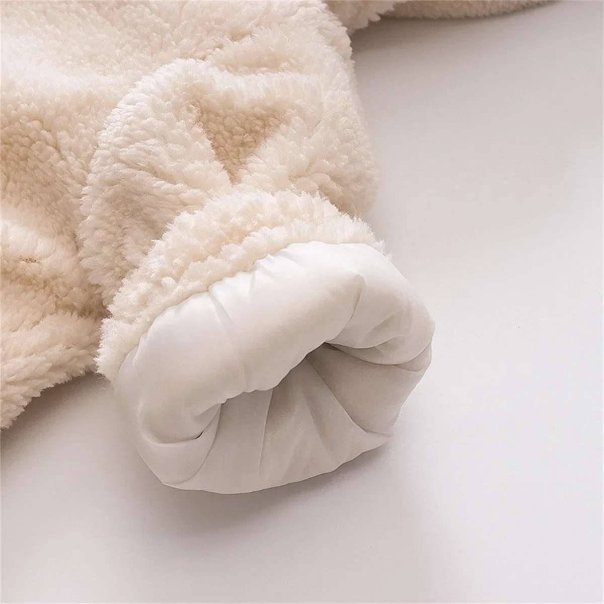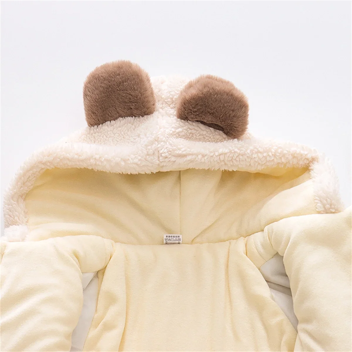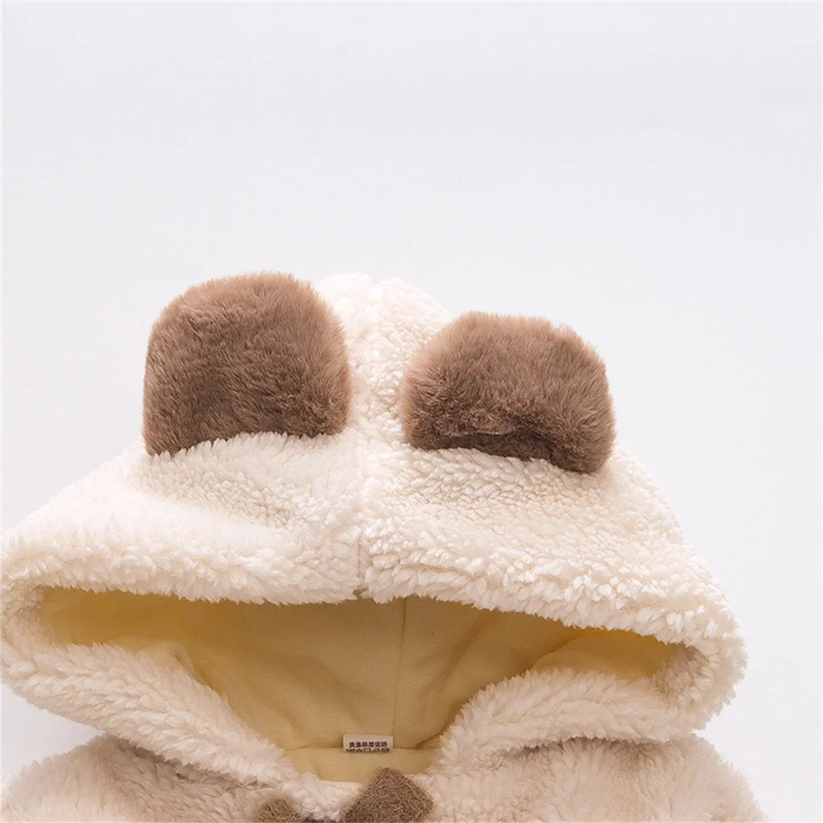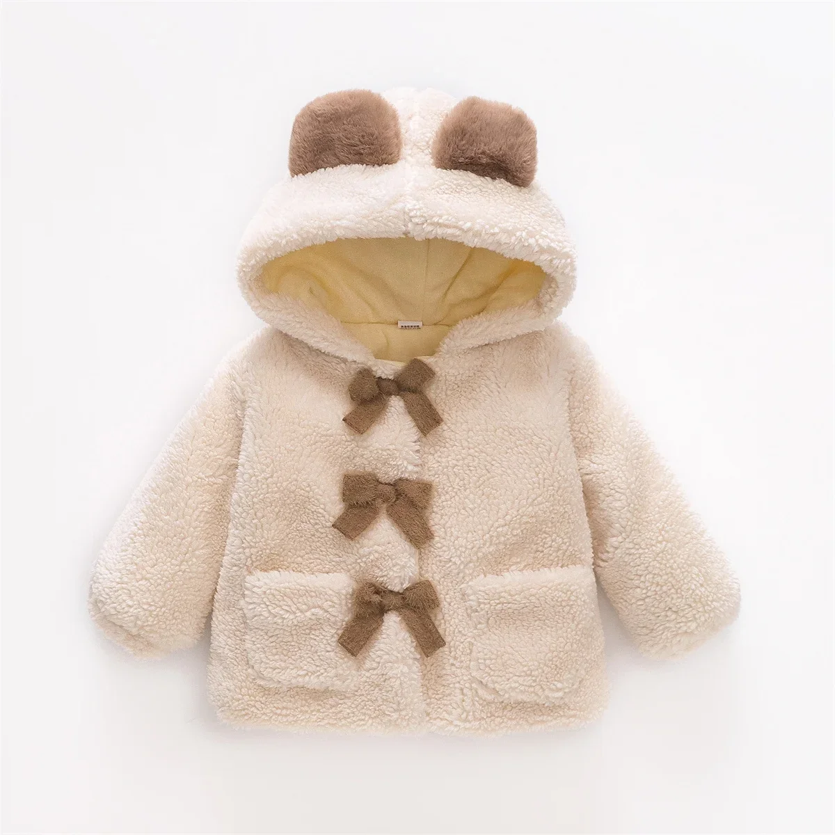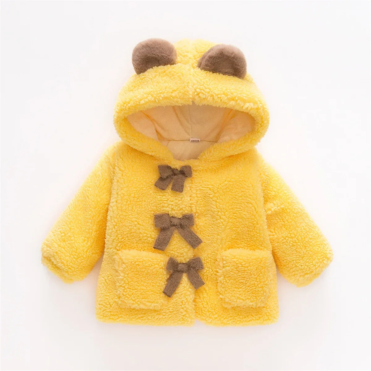 (0-3 Years Old Girls) Winter New Girls' Top Warm Furry Hat Bow Ribbon Warm Cute Hooded Bear Ears Long Sleeve Pocket