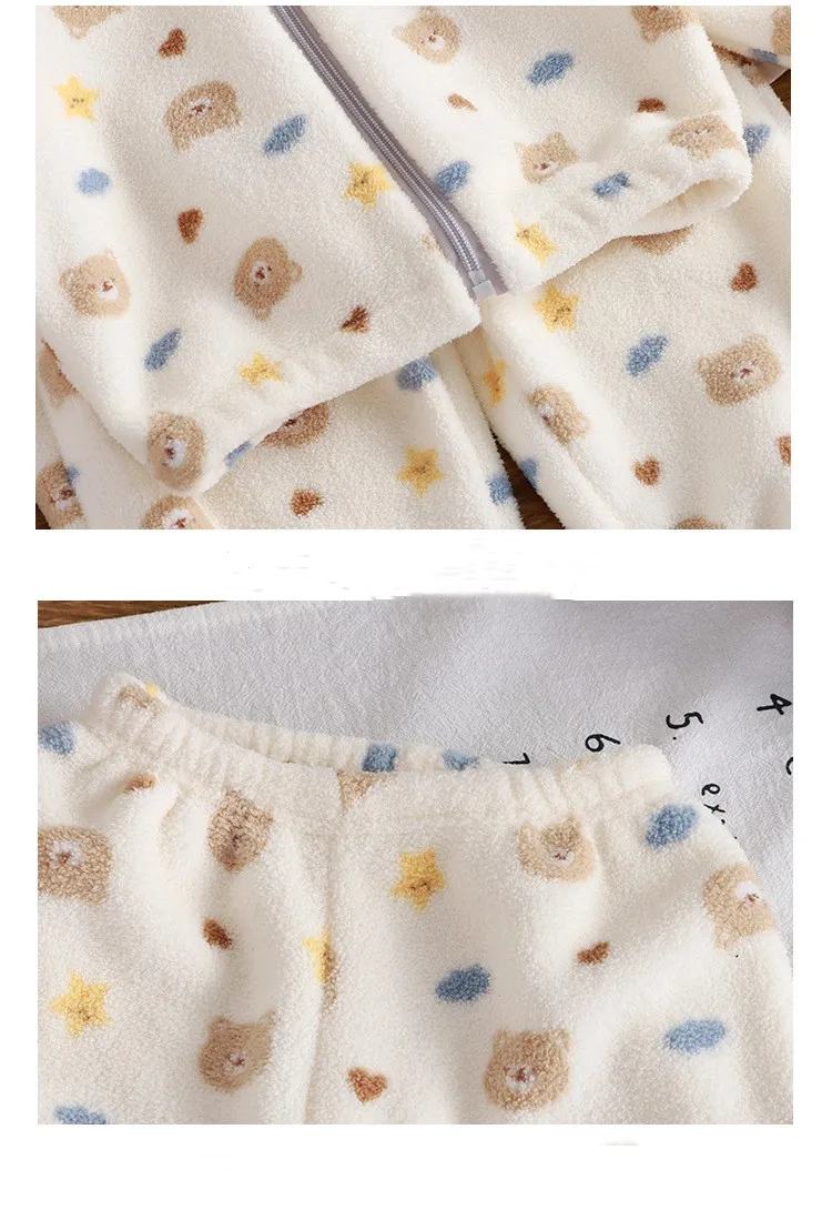 0-4 years old Toddler suit winter flannel home outdoor suit children pajamas boy girl cartoon thick coral velvet two-piece set