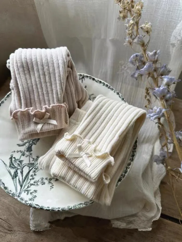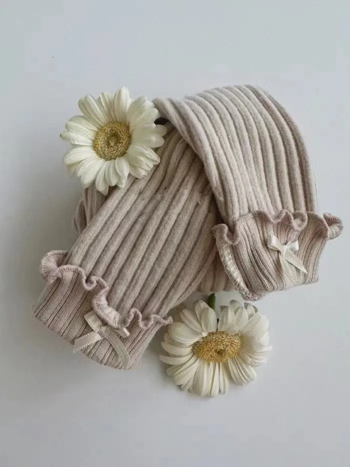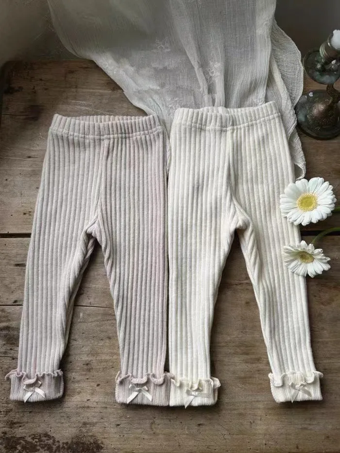 2024 Autumn New Baby Girl Ribbed Leggings Solid Tights For Infant Girl Cotton Casual Pants Toddler Versatile Slim Fit Trousers