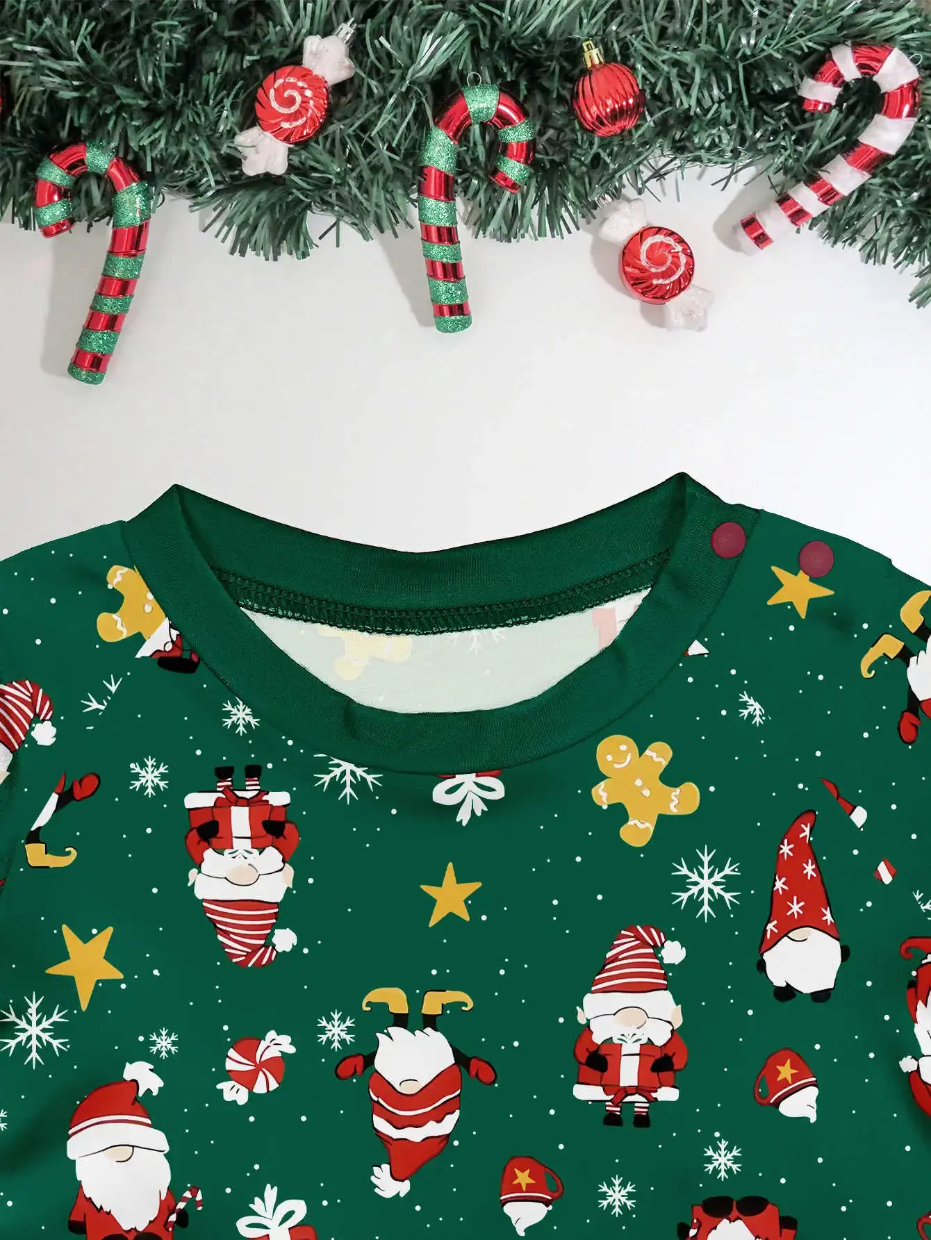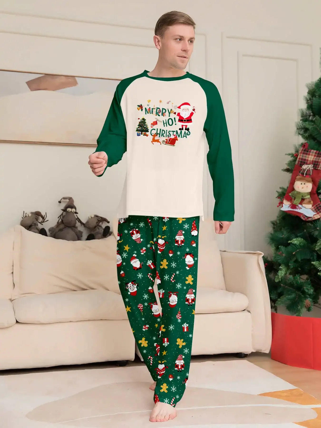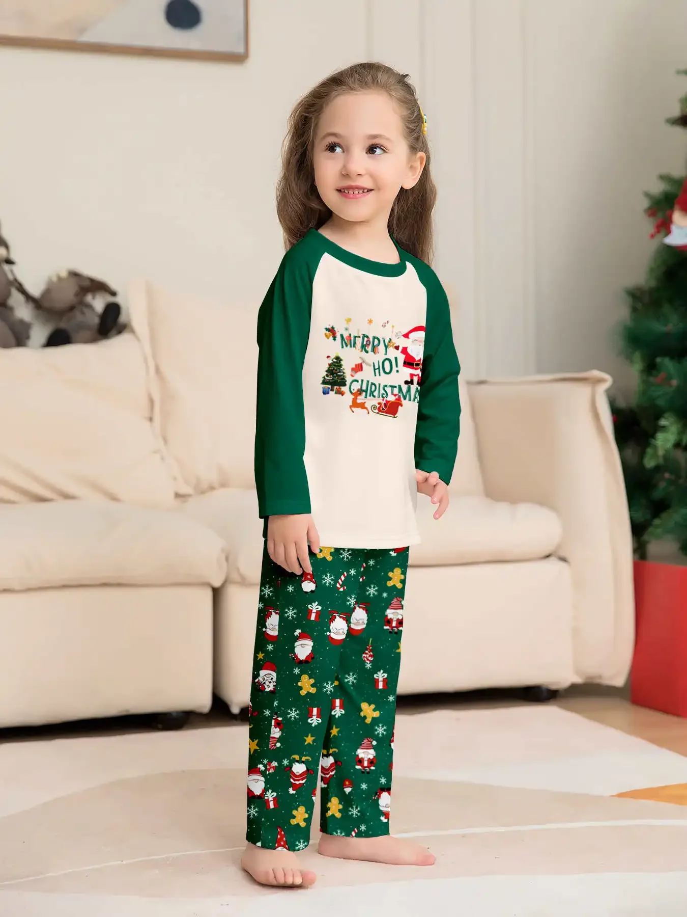 2025 New Year's Costumes Family Christmas Pajamas Set Mom Daughter Dad Son Matching Outfit Green Print Cute Sleepwear Xmas Look