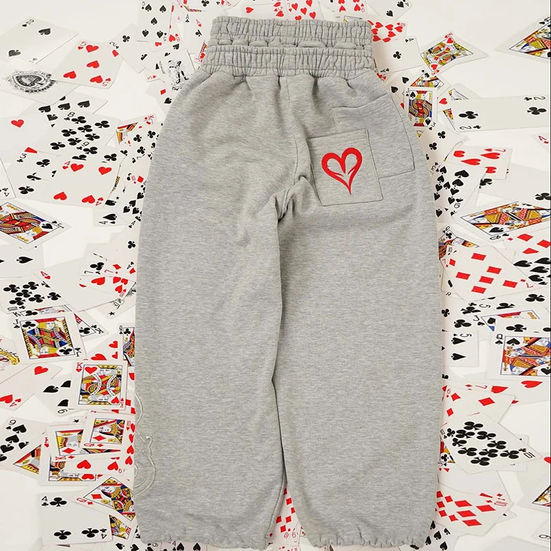 2025 Poker Card Love Embroidery Pattern Casual Double Waist Two-Piece Pants Popular Fake Two-Piece Double Waist Head Pants