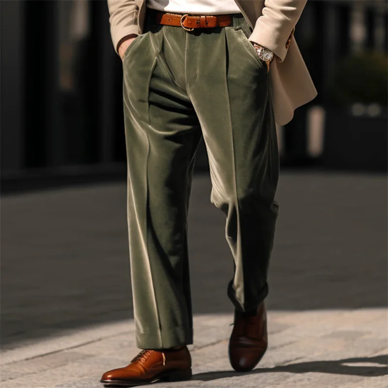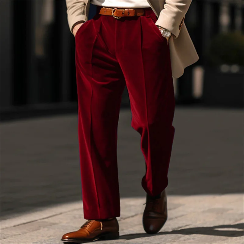 2025 Spring Autumn Men's Solid Color Velvet Suit Pants Business Casual Straight Leg Trousers Male Streetwear Fashion Dress Pants