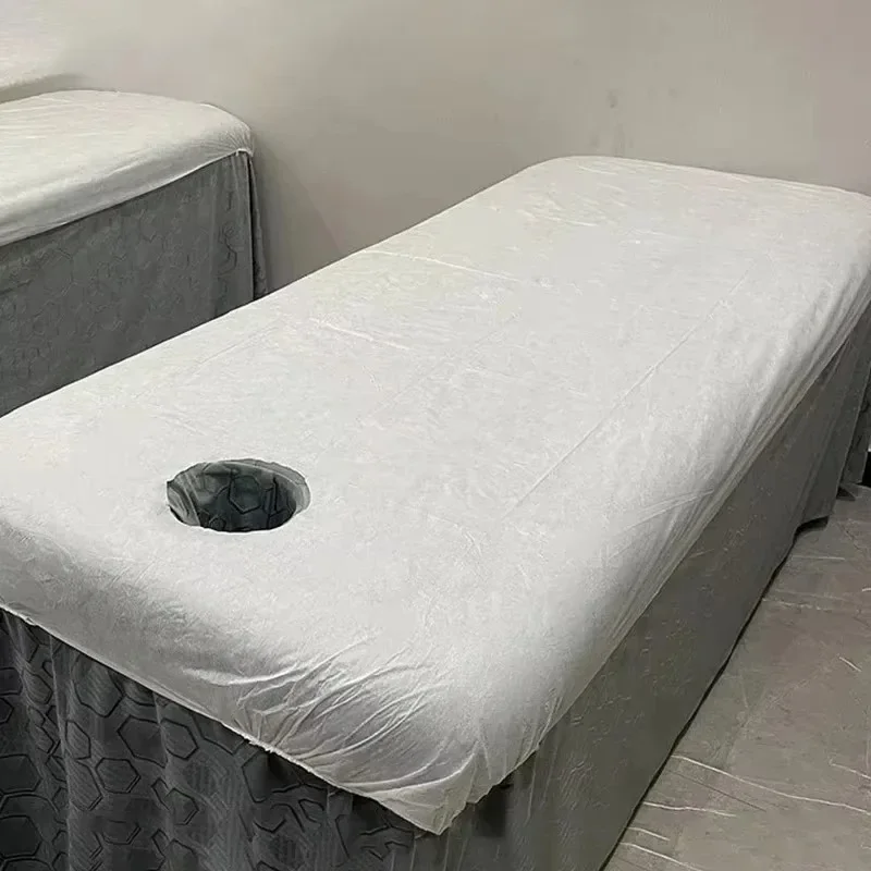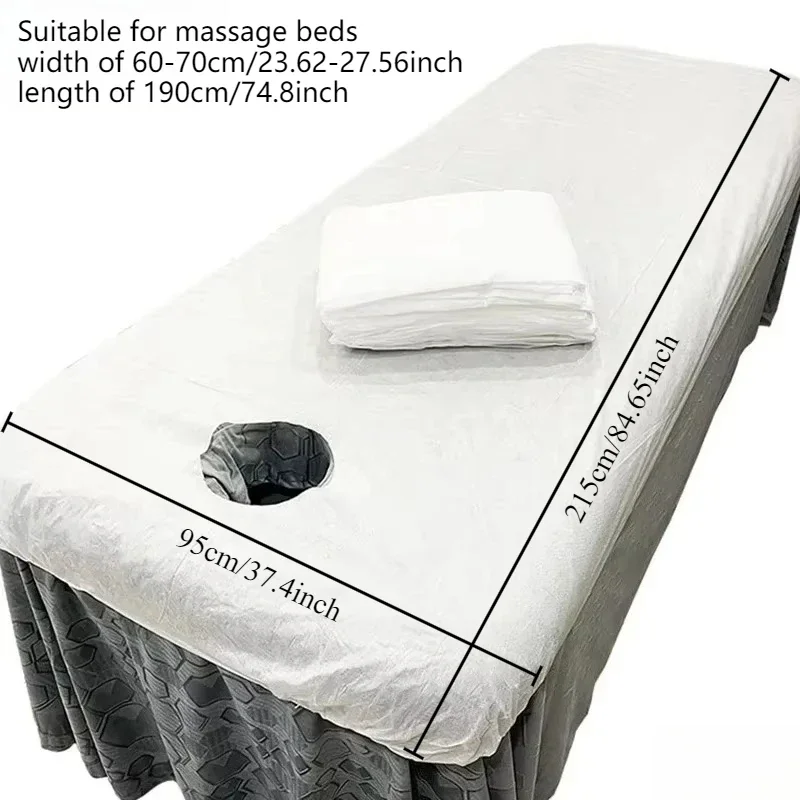 20PCS Disposable Bed Cover for Beauty Salon Open Hole Spa Massage Soft Bed Sheets Non-woven Fabric Breathable Elastic Bedspread
