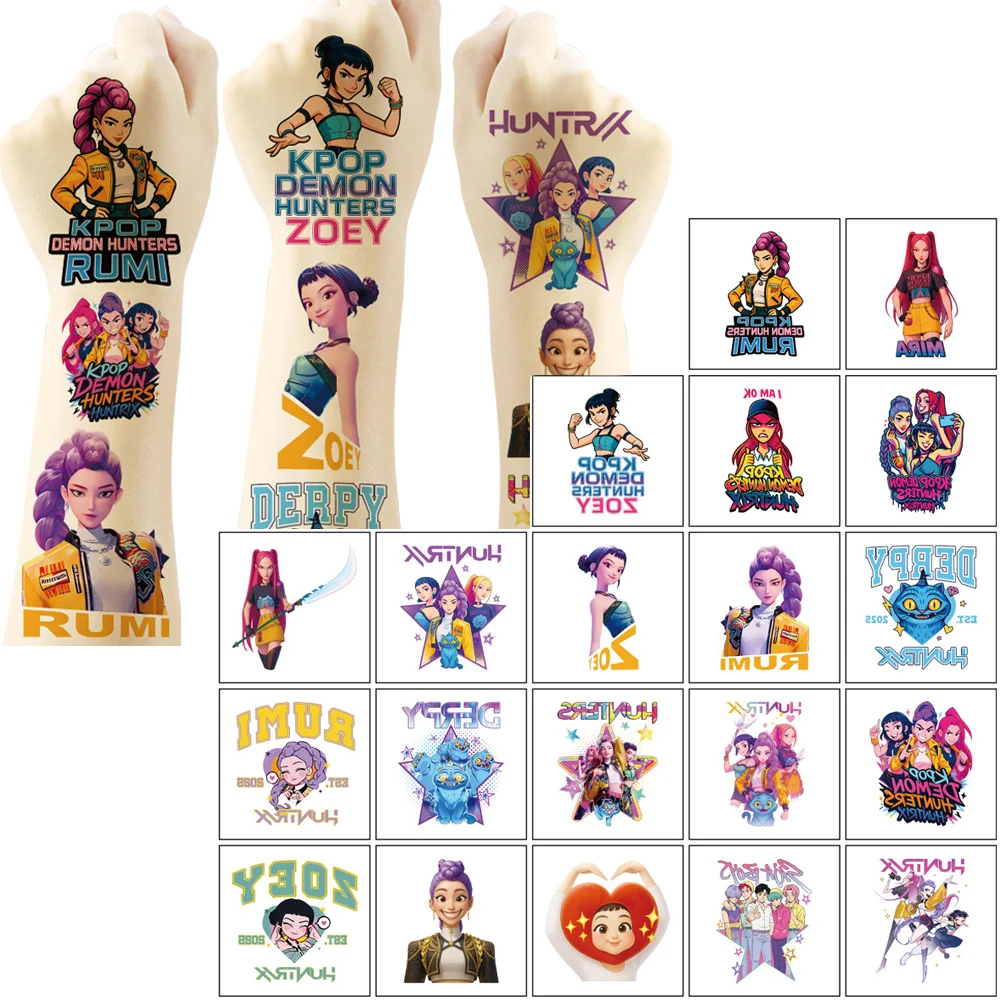 20pcs Kpop Demon Hunters Tattoo Stickers Funny Anime Game Cartoon Body Art Temporary Fake Tattoos Kids DIY Toy Reward Party Gift