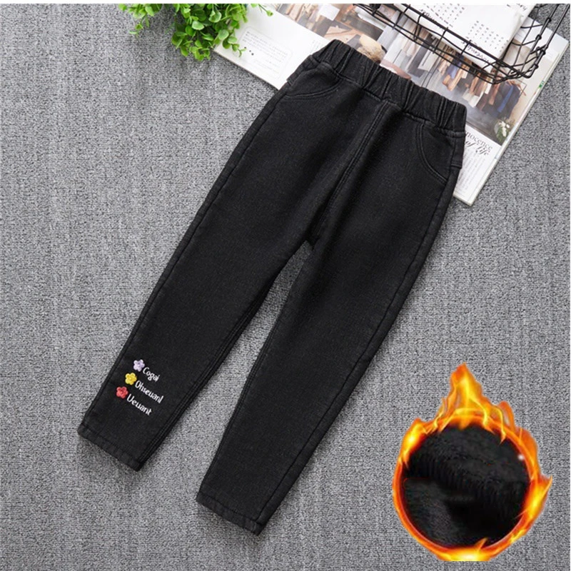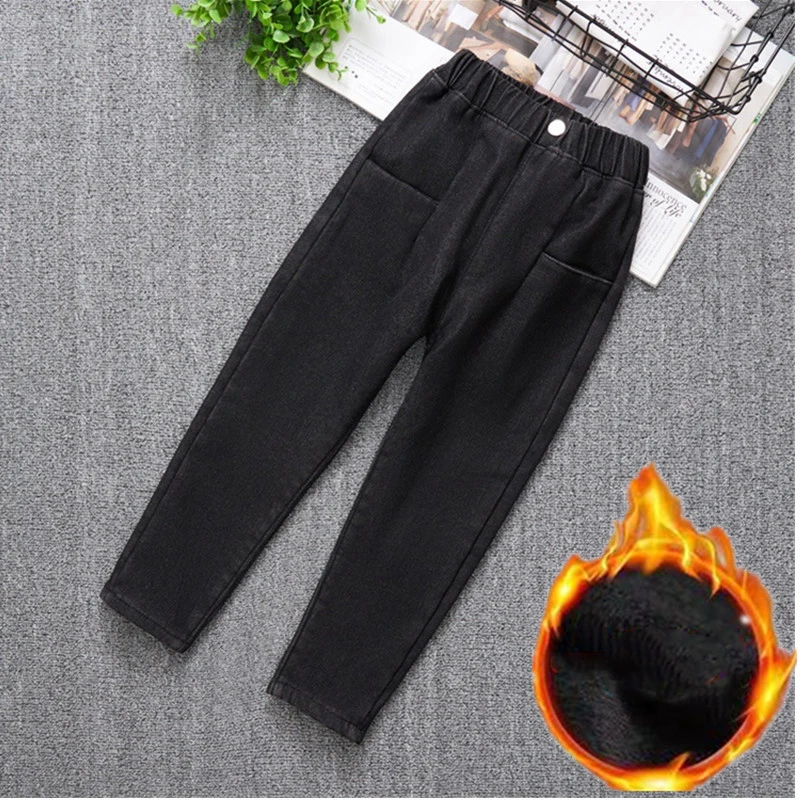 3-14 Years Teenage Pants For Girls Roupa Infantil Menina Winter Fleece Children Jeans Kids Denim Trousers Girls Clothing