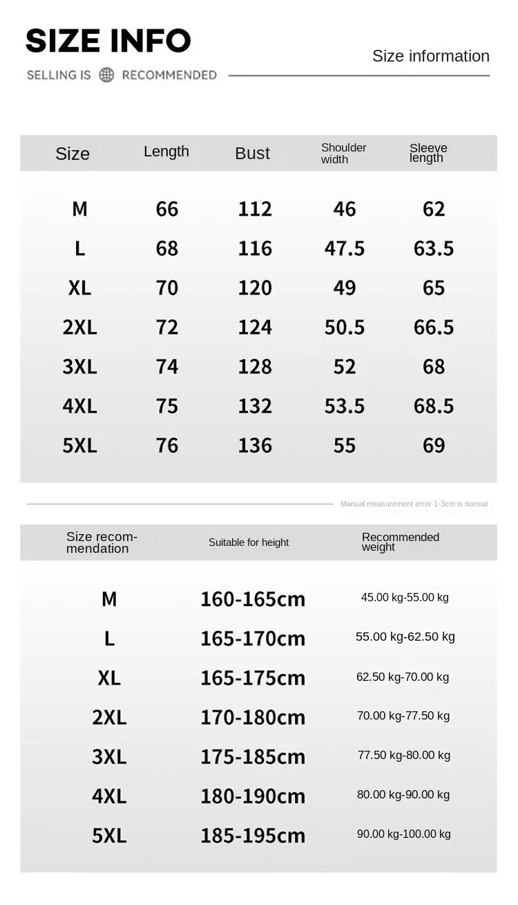 size_info: {"sizeInfoList":[{"length":{"cm":"46","inch":"18.11"},"size":"M","vid":361386},{"length":{"cm":"47","inch":"18.50"},"size":"L","vid":361385},{"length":{"cm":"49","inch":"19.29"},"size":"XL","vid":100014065},{"length":{"cm":"50","inch":"19.69"},"size":"XXL","vid":4182},{"length":{"cm":"52","inch":"20.47"},"size":"XXXL","vid":4183},{"length":{"cm":"53","inch":"20.87"},"size":"4XL","vid":200000990},{"length":{"cm":"55","inch":"21.65"},"size":"5XL","vid":200000991}]}