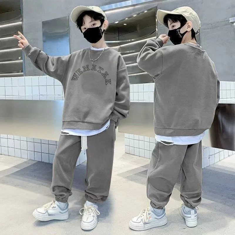Autumn Children Boy Clothes Set Teenage Sweatshirts Pullover Top And Pants 2 Pieces Suit Fashion Letter Printed Tracksuits