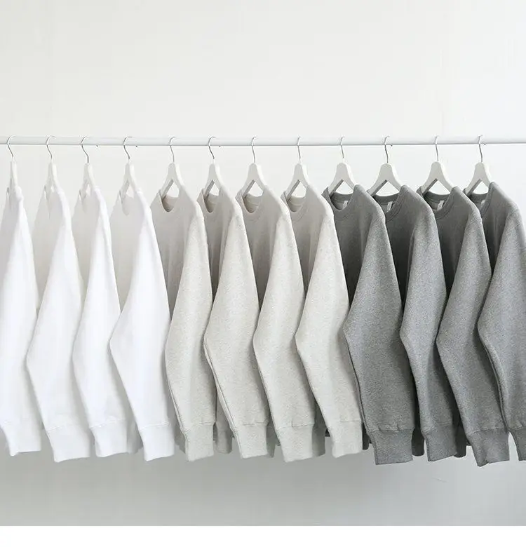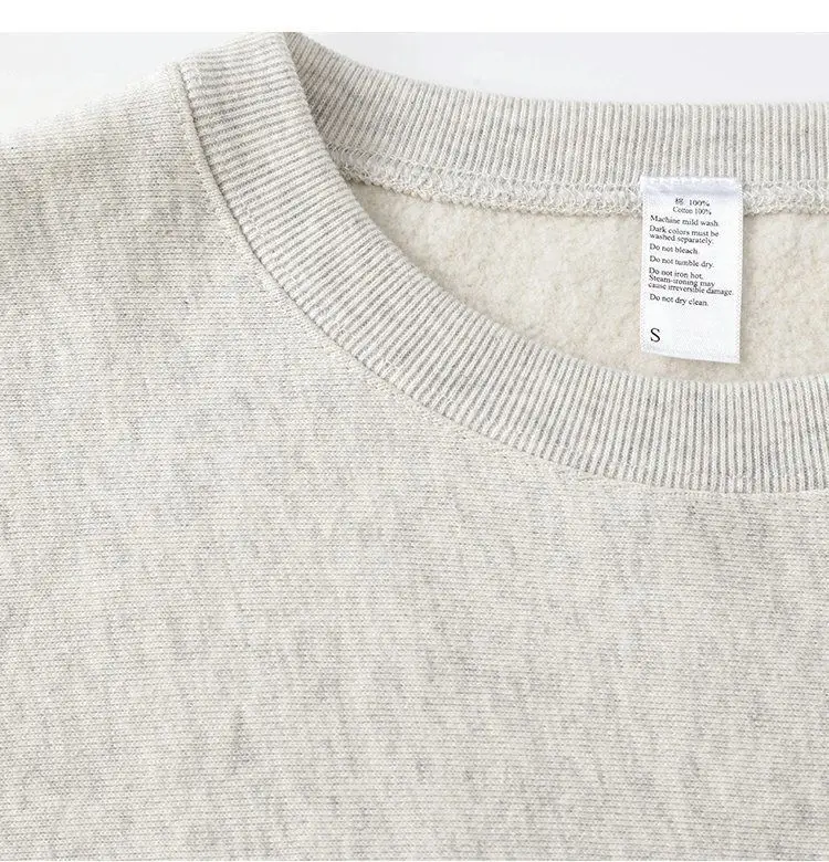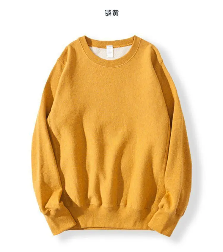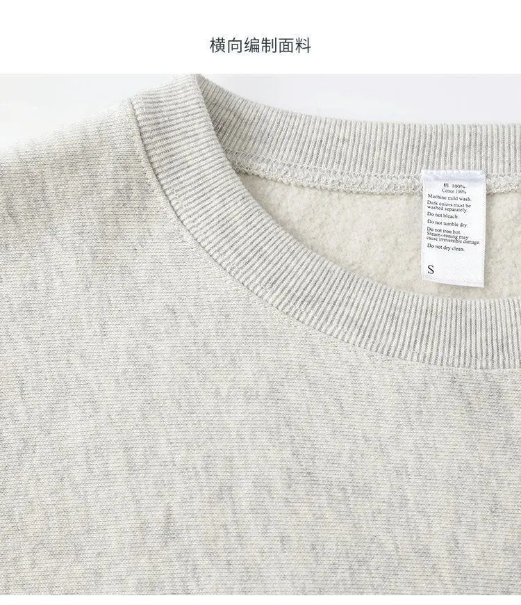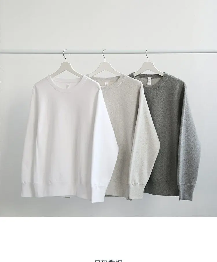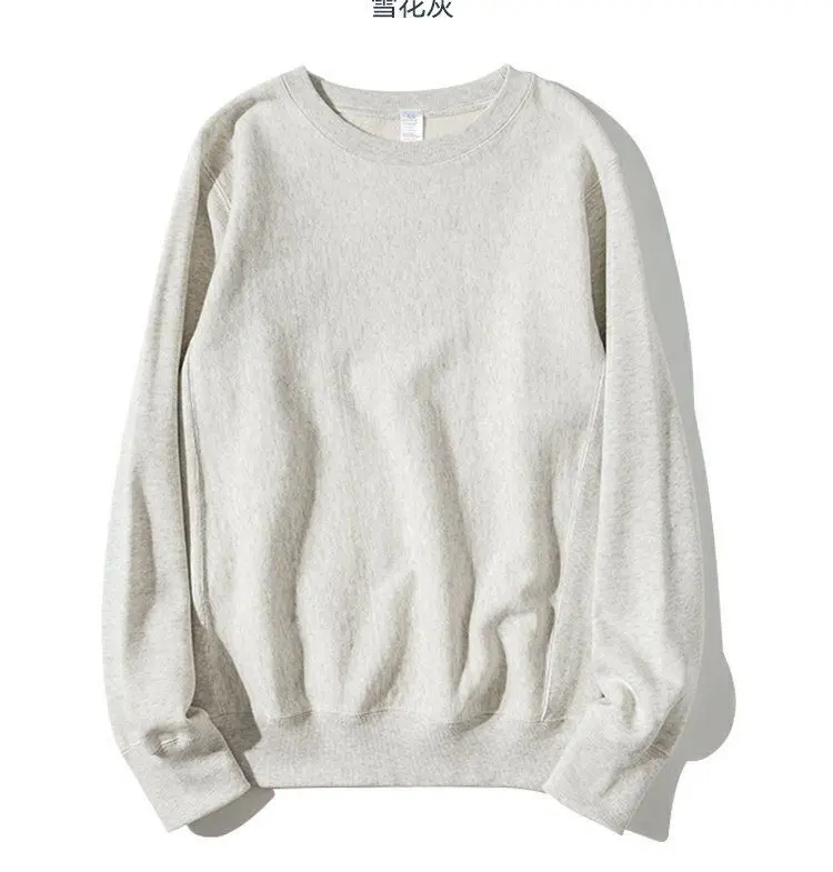 Autumn Heavyweight Cotton Round Neck Sweater Solid Loose Simple Sports Harajuku Top for Men and Women Pullover