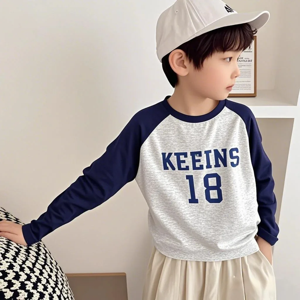 Baby Boys' Girls' Cotton T-shirts Color-blocking Long-sleeved Tshirts Casual Fashion Children's Clothing Base Shirts