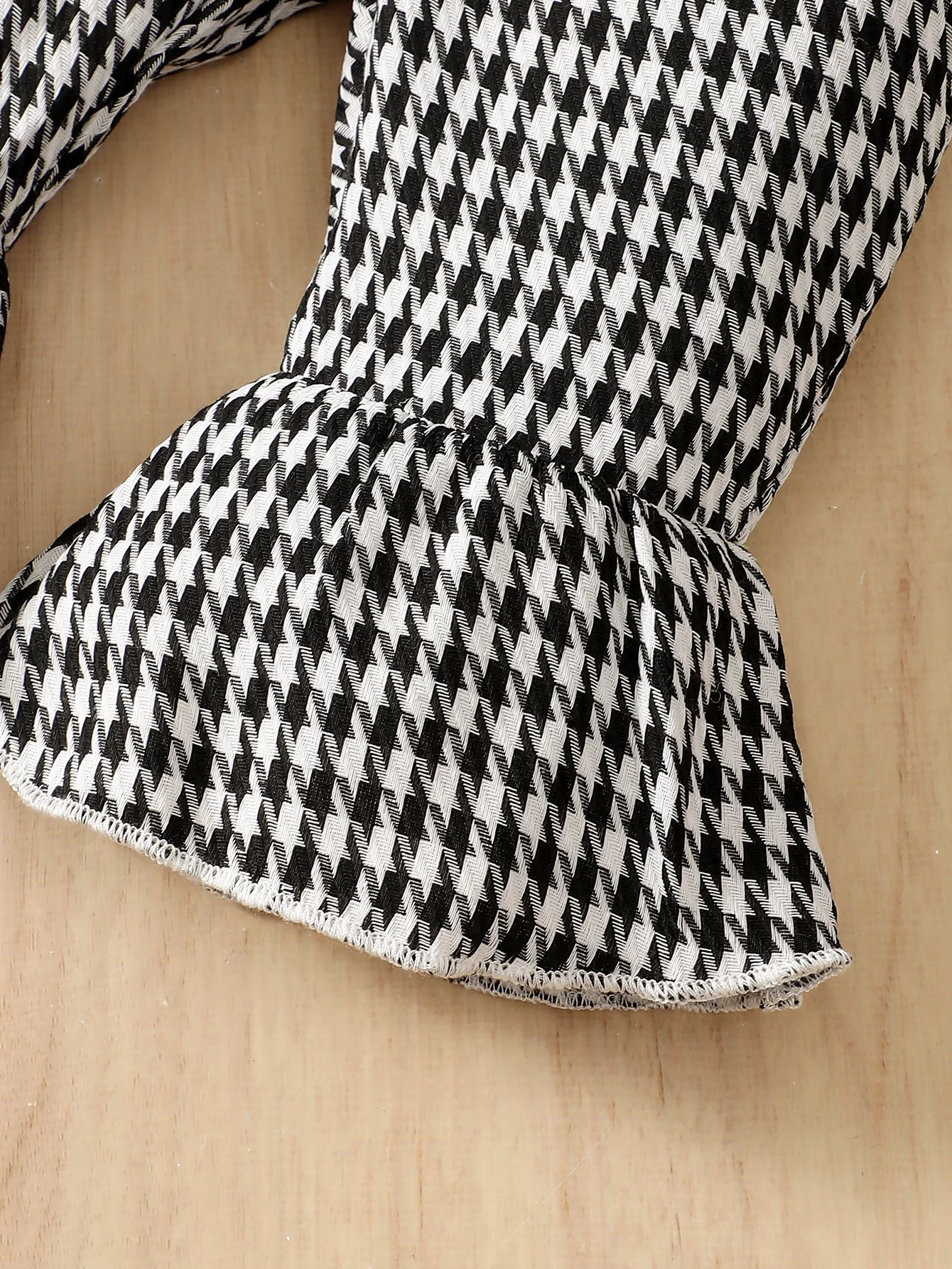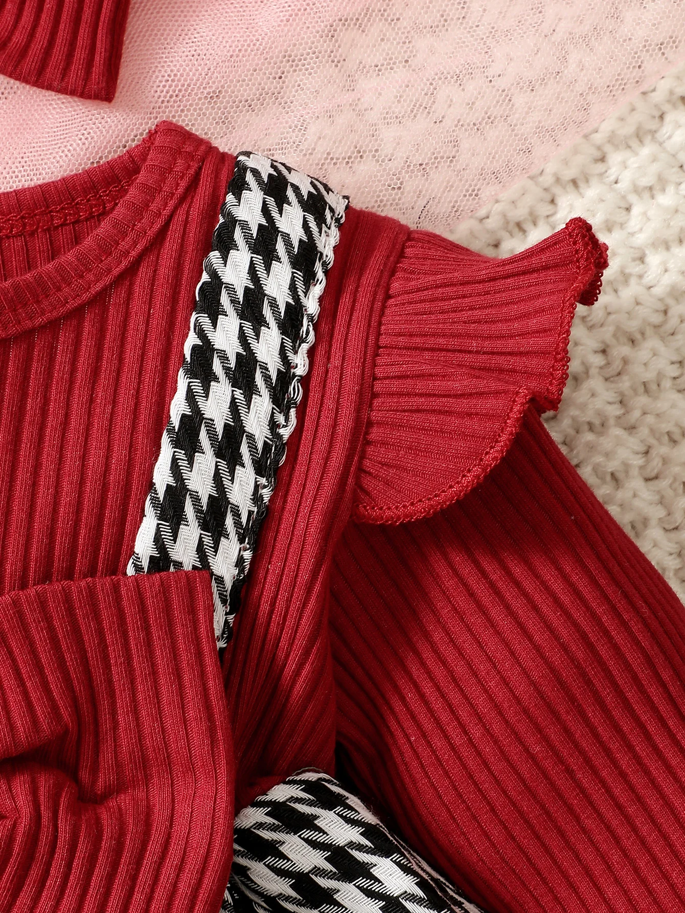 Baby Girl Autumn/Winter Fashion Cute Round Neck Thousand Bird Grid Color blocked Lotus Leaf Side Sleeve Fake Two piece Strap Ski