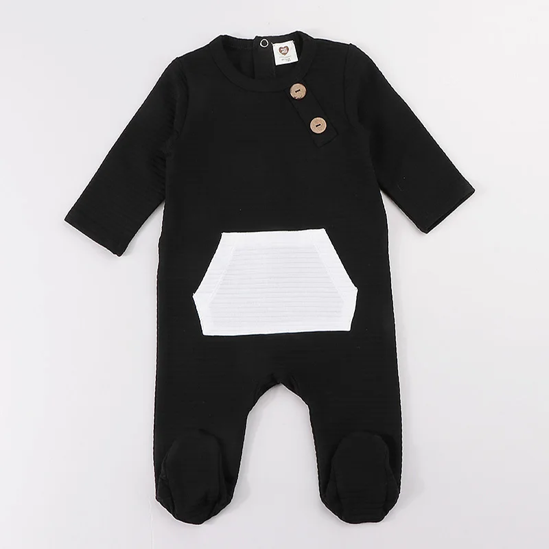 Baby romper elegant outfit winter ribbed pajamas baby overalls contrast pocket boy girls clothes footies baby autumn clothes