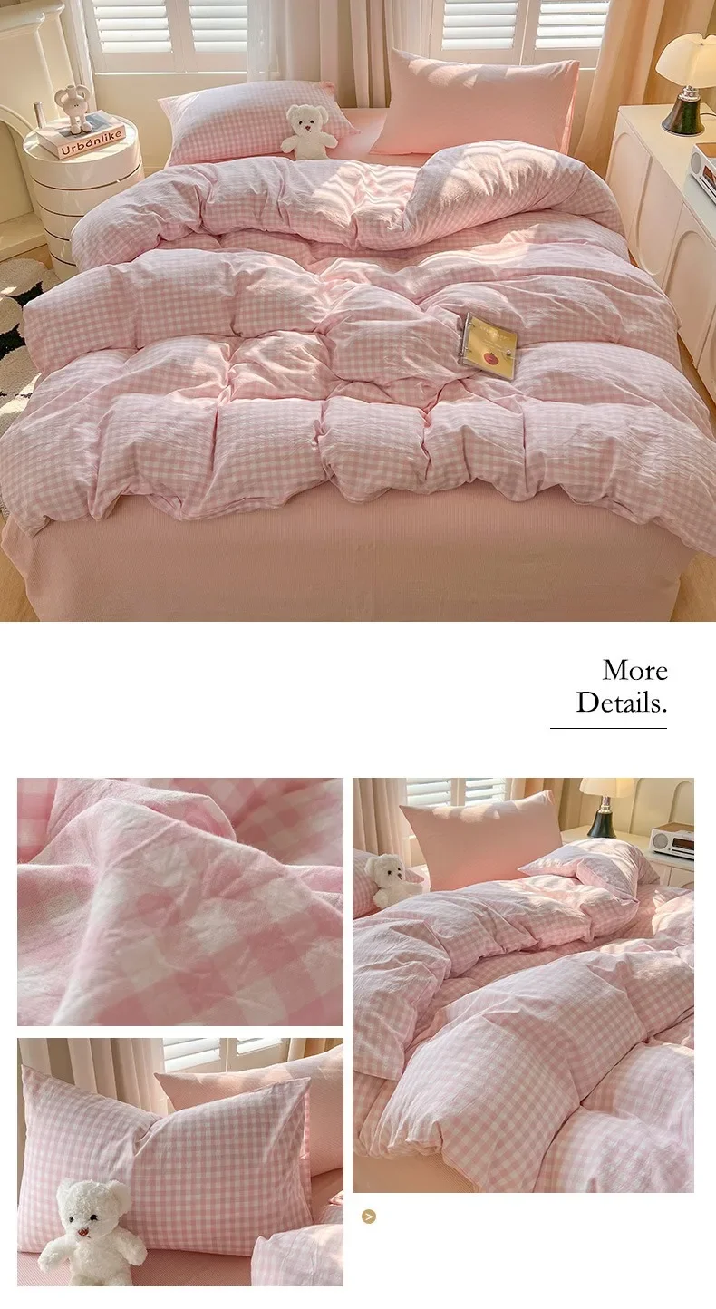 Bed Sheets Set Plaid Style Duvet Cover Pillowcase with Bedsheets Home Bed Linen Sets 이불커버세트 Skin-friendly Bedclothes
