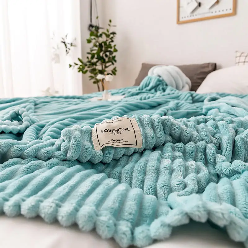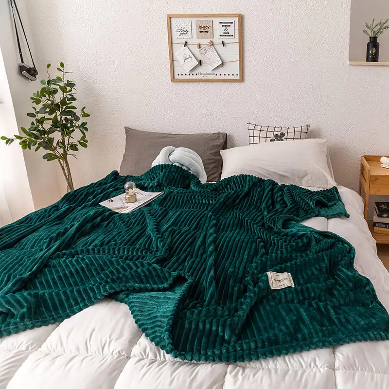 Bonenjoy Bed Blanket Green Color Soft Flannel Blanket Single Queen King Warm Plaids for Beds mantas de cama Thow Blankets