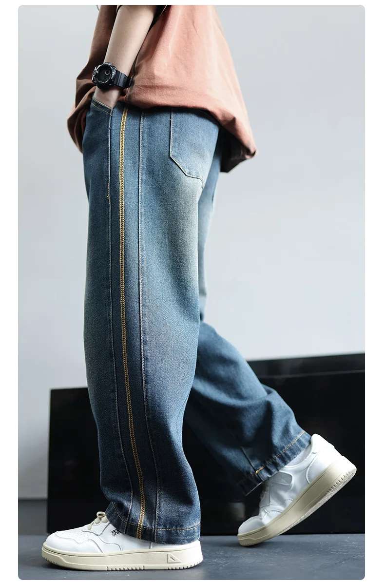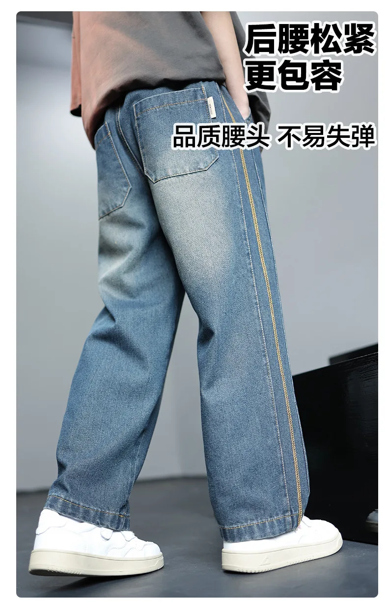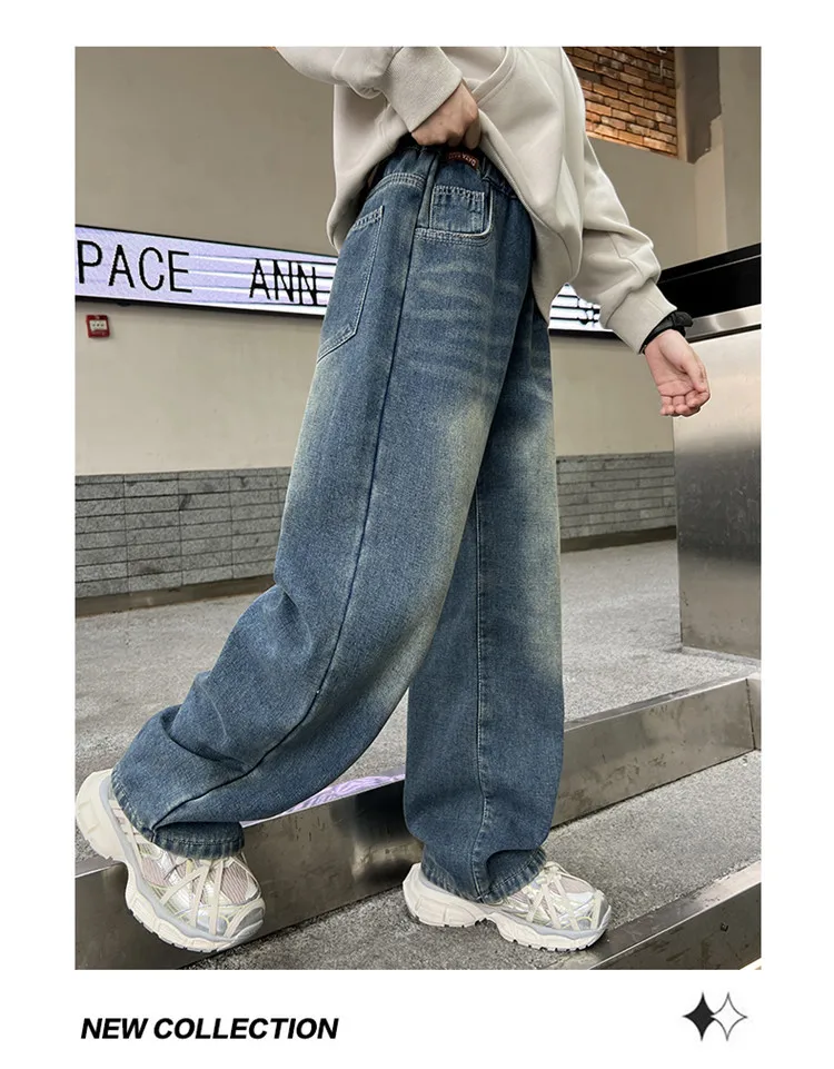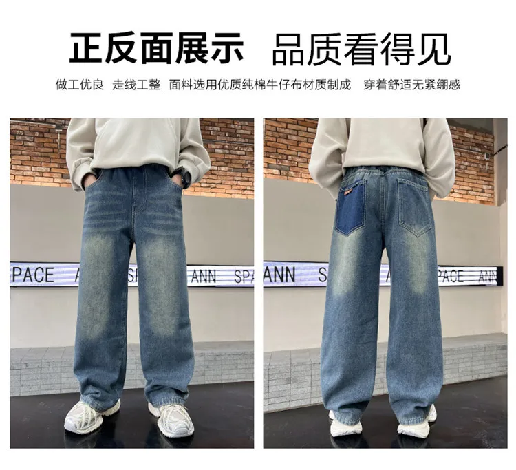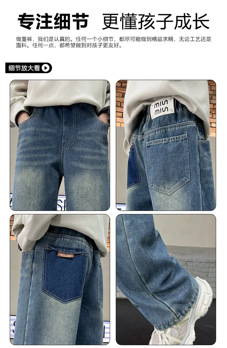 Boys Jeans 2024 Autumn&winter New Teenage Children Plus Fleece Warm Pants Boys Fried Street Handsome Pants Kids Denim Trousers