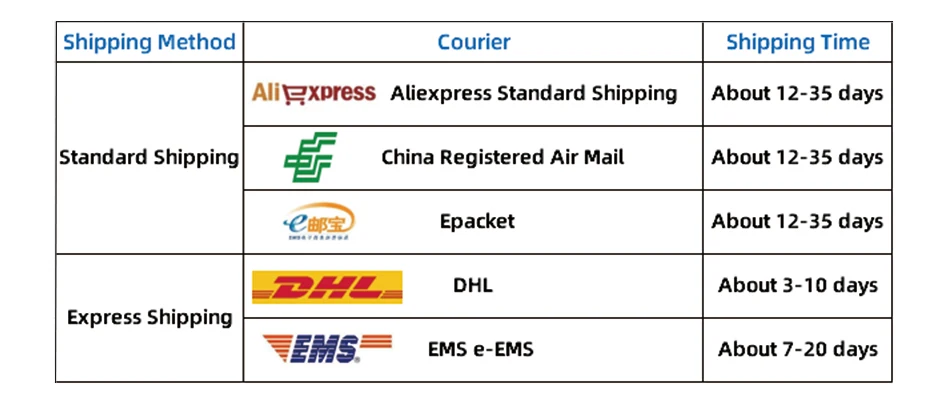 1) We Accept China Post,EMS,DHL and Epacket (For USA & Russia).