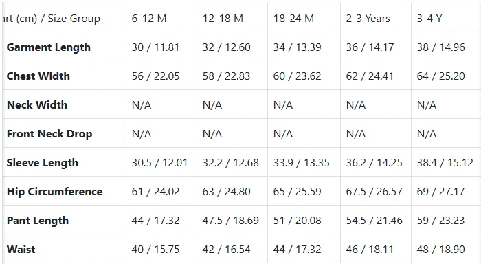 size_info: {"sizeInfoList":[{"length":{"cm":"30","inch":"11.81"},"size":"6-12M","vid":-1},{"length":{"cm":"32","inch":"12.60"},"size":"12-18M","vid":-2},{"length":{"cm":"34","inch":"13.39"},"size":"18-24M","vid":-3},{"length":{"cm":"36","inch":"14.17"},"size":"2-3T","vid":-4},{"length":{"cm":"38","inch":"14.96"},"size":"3-4T","vid":-5}]}