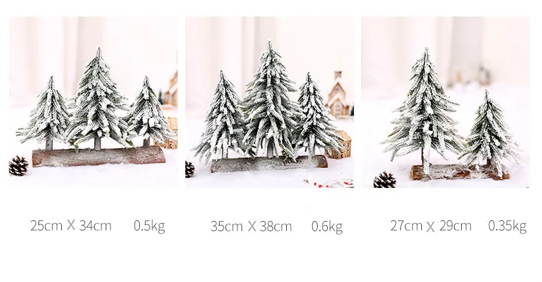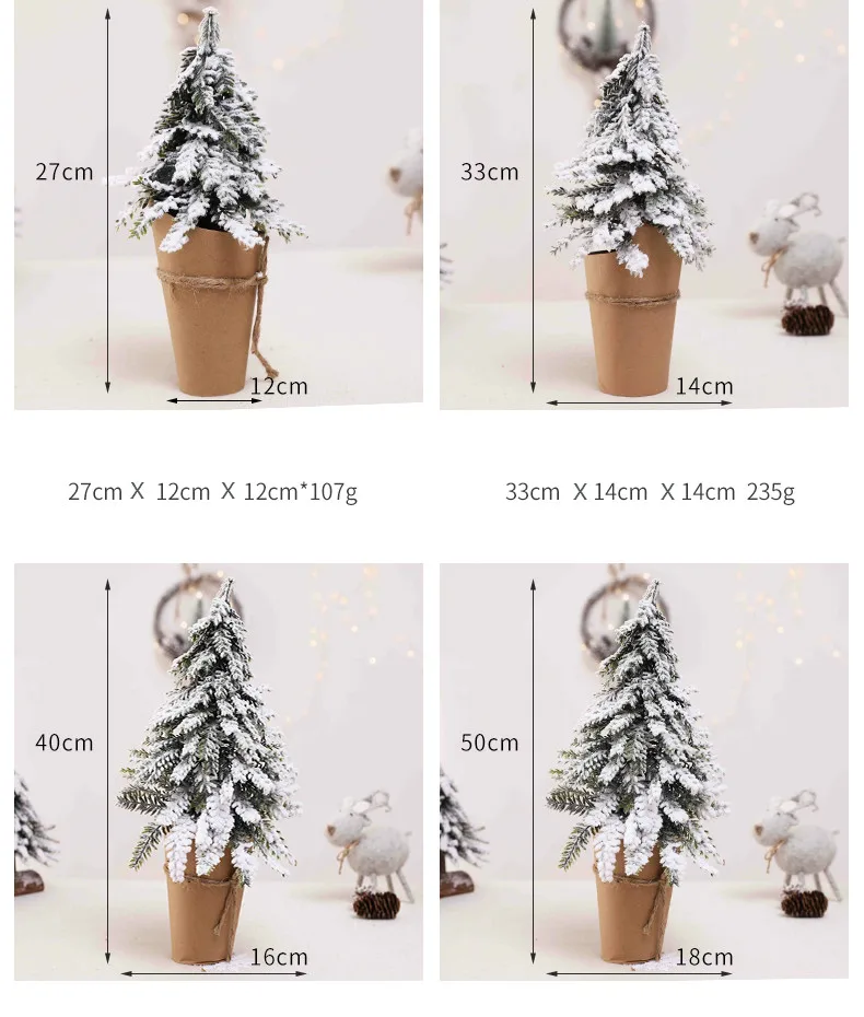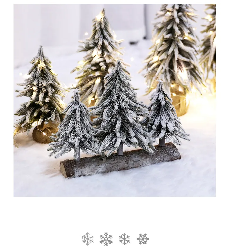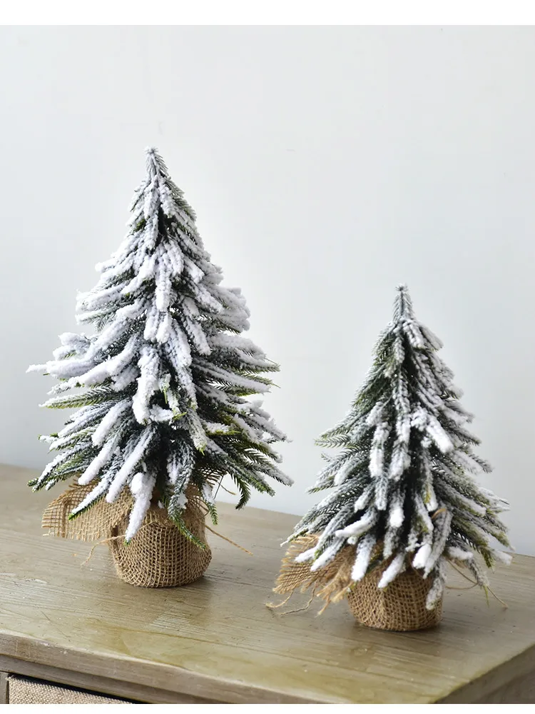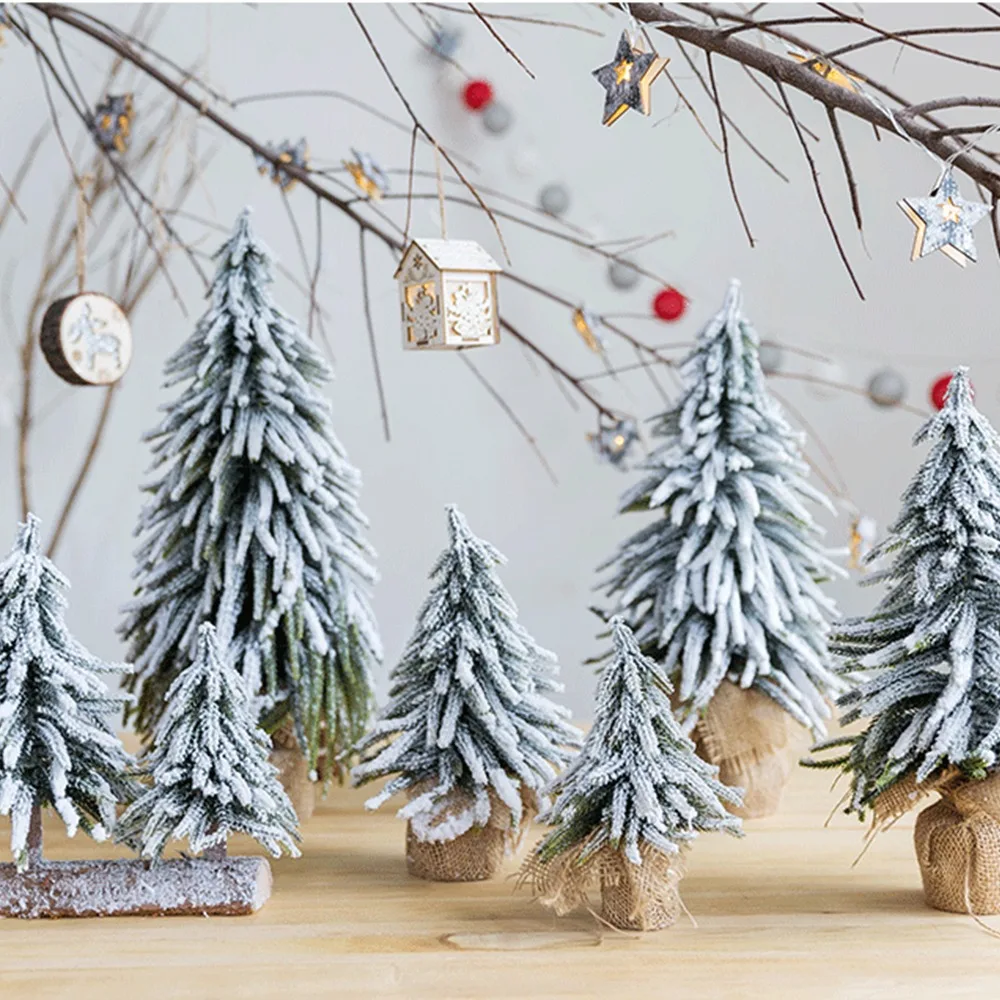 Christmas Tree Mini Pine Tree With Wood Base DIY Home Table Top Decor Christmas Artificial Frosted Sisal Small Trees Party Decor