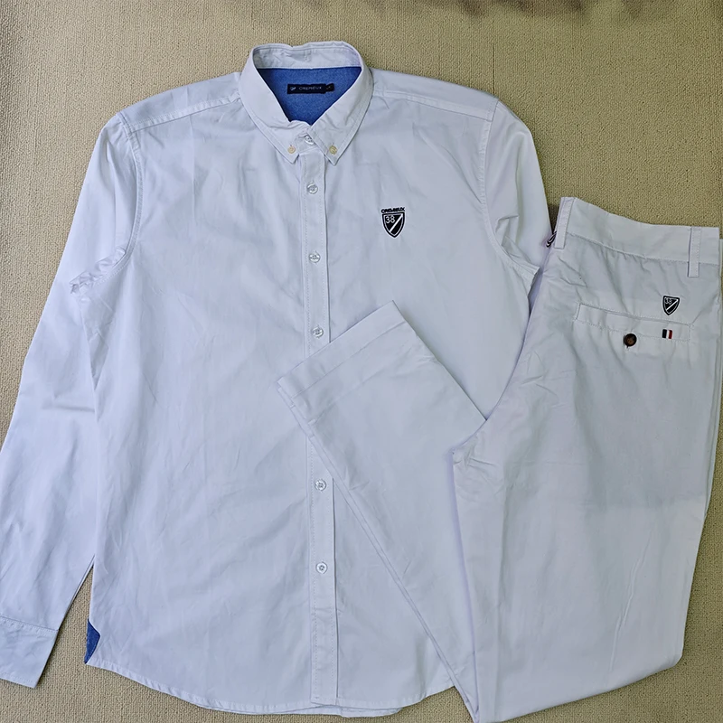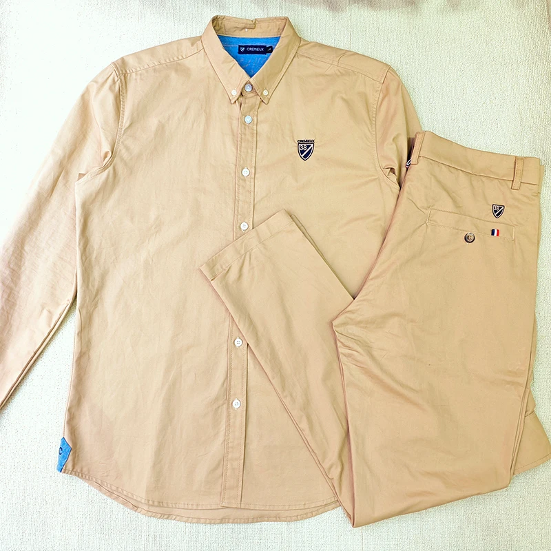 Cremieux Four Season Tracksuit Chemise for Homme Men Shirt Setting Two PCS Full Pants Fashion Casual 100%Cotton Del France