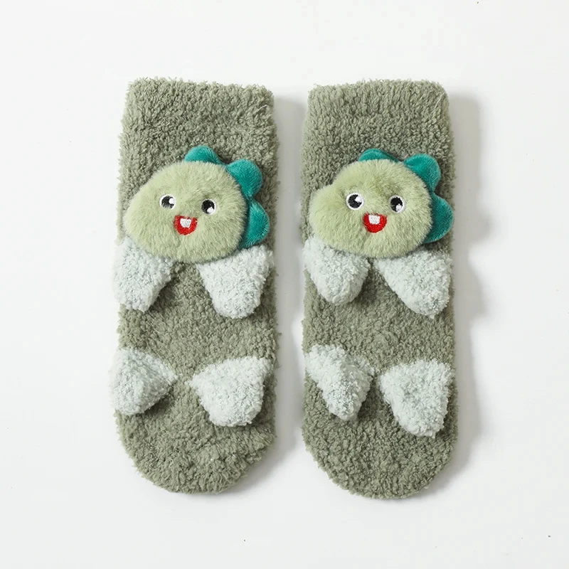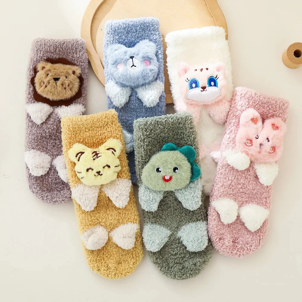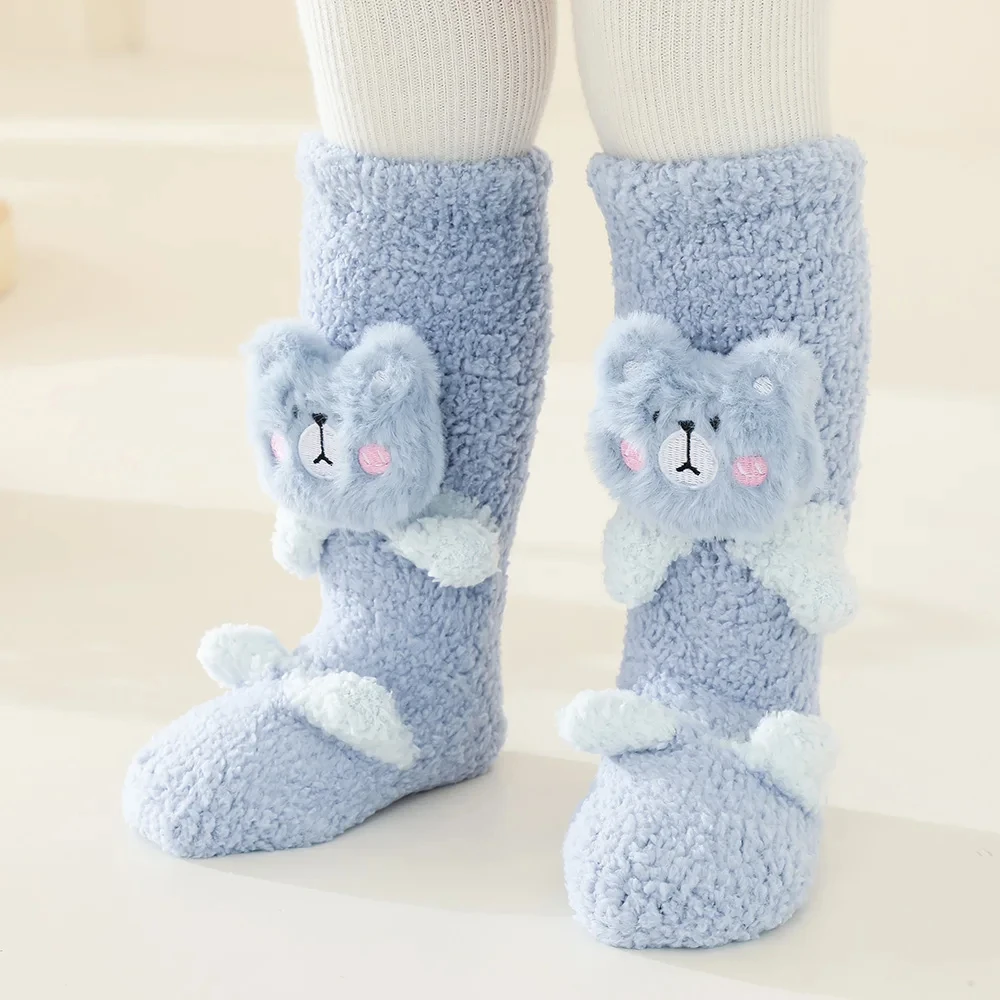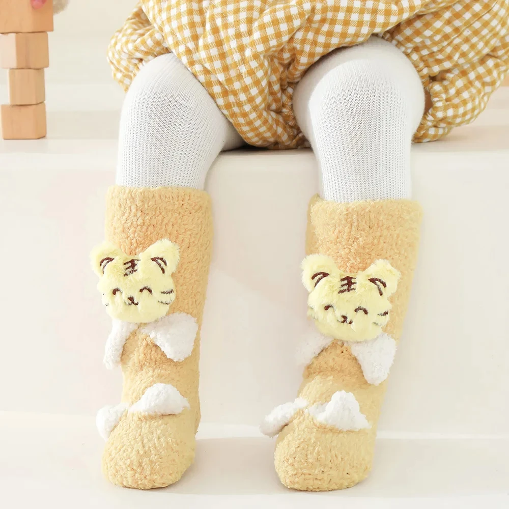 Cute Cartoon Baby Socks Winter Coral Fleece Thickened Baby Long Tube Newborn Boy Girls Non-slip Children's Floor Socks