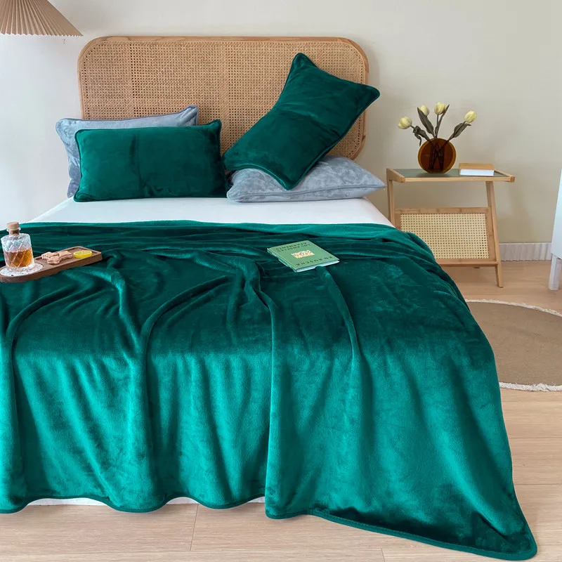 Dark Green Flannel Fleece Blanket Plush Summer Quilt 200*230cm Bed Sheet Bedspread For Spring Winter Autumn Adult Home Bedding