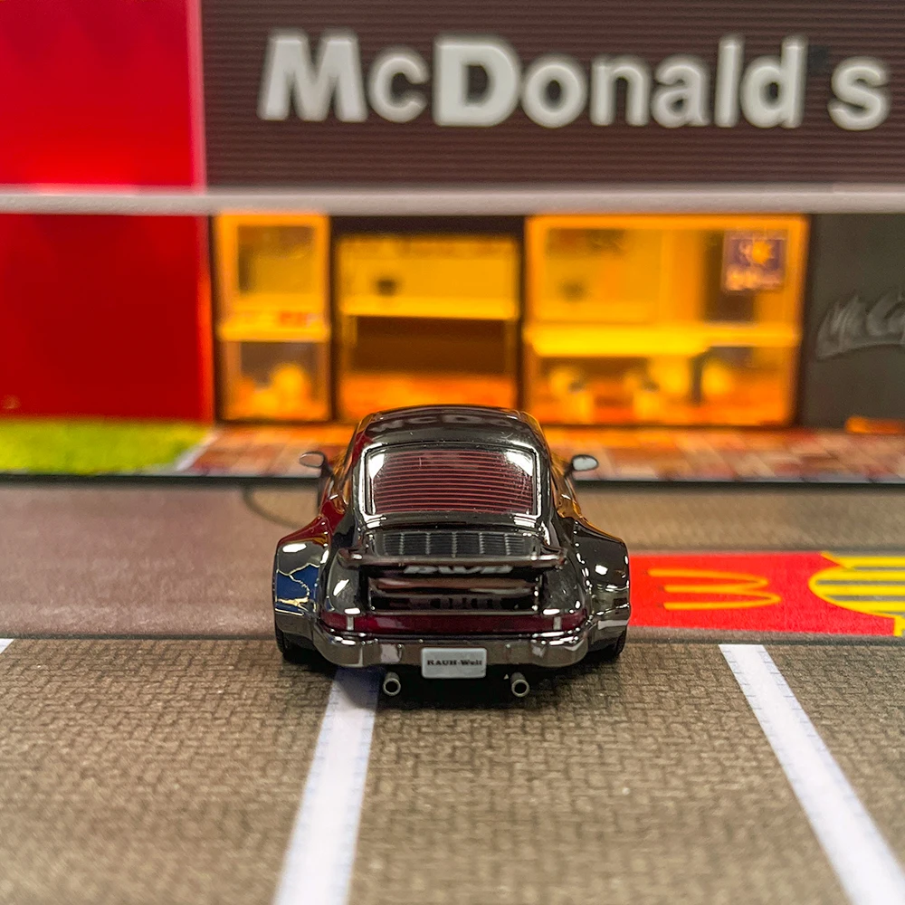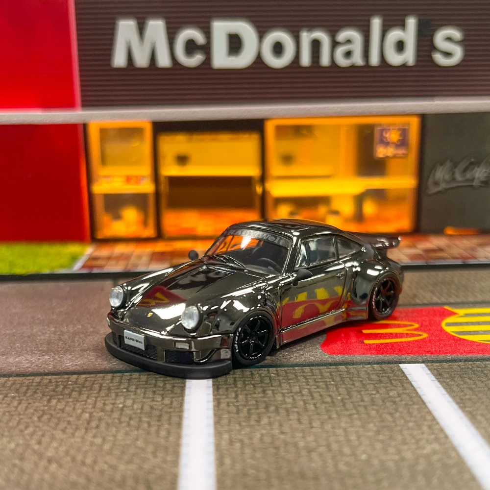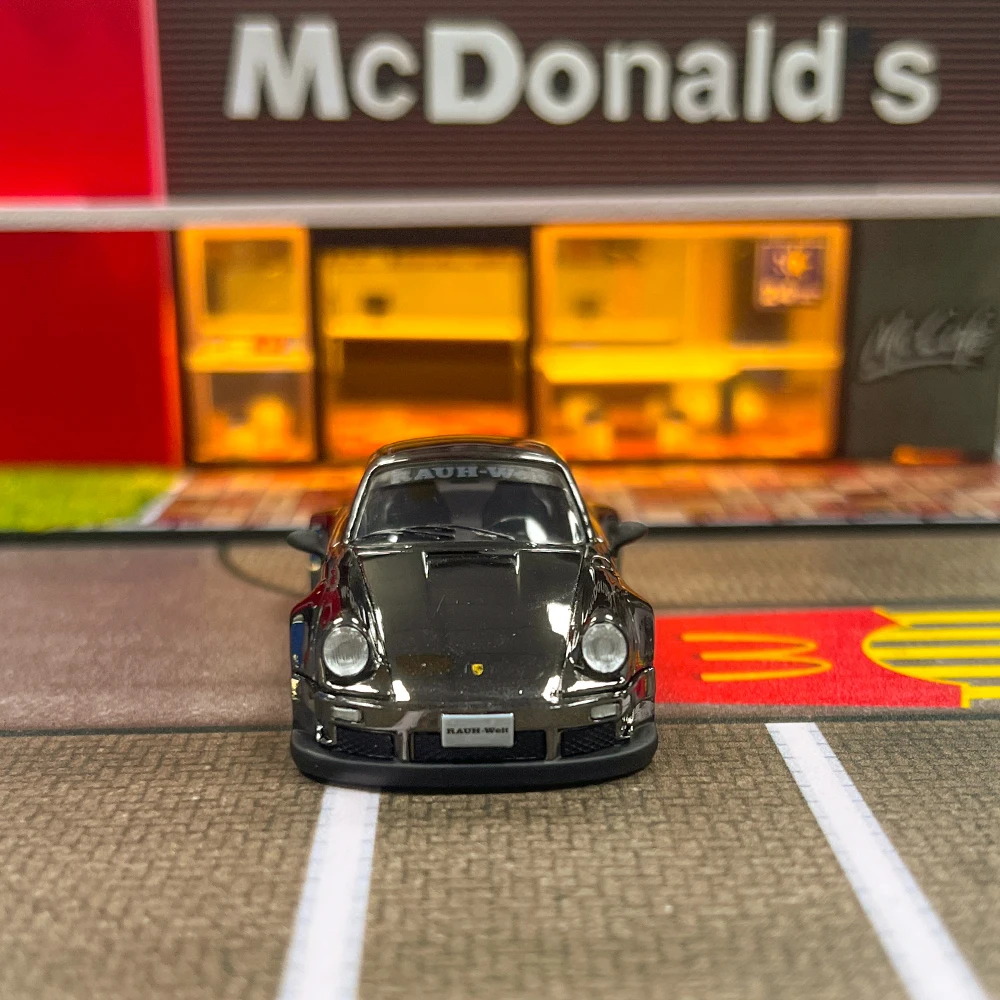 Diecast 1/64 Scale RWB 930 Wide-body Modified Sports Car Model Alloy RWB 930 Electroplated Gun Grey Collection Car Model