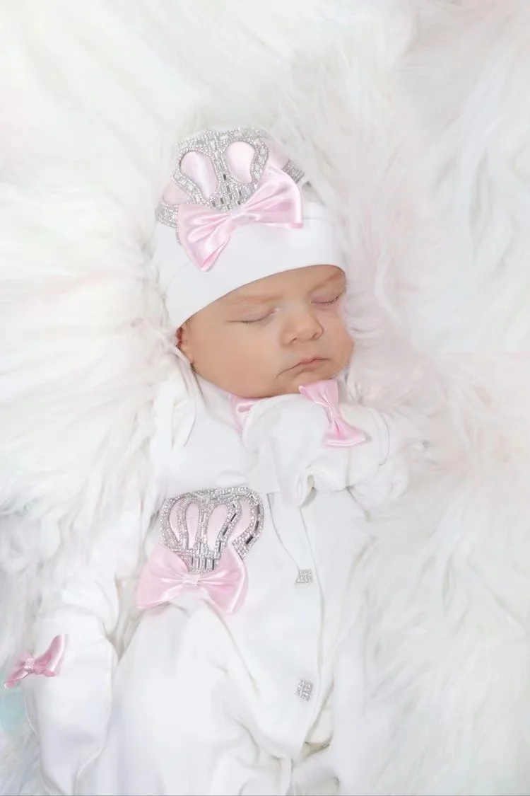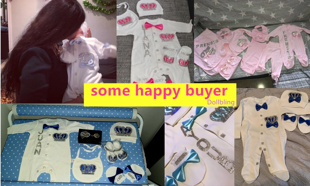Our 5 pieces set is made up of soft, thick cotton. They are embellished with rhinestone buttons, crown jewels and bows.