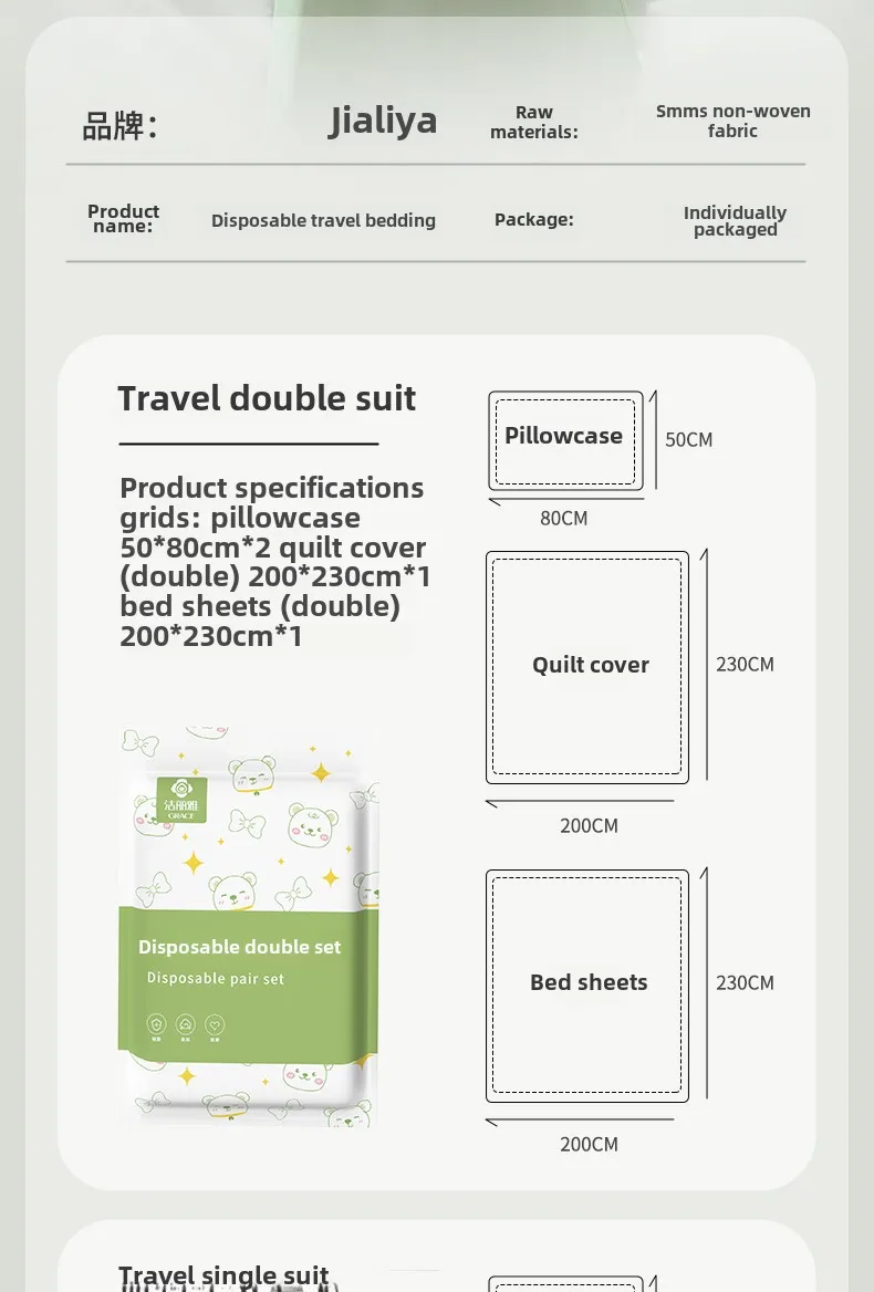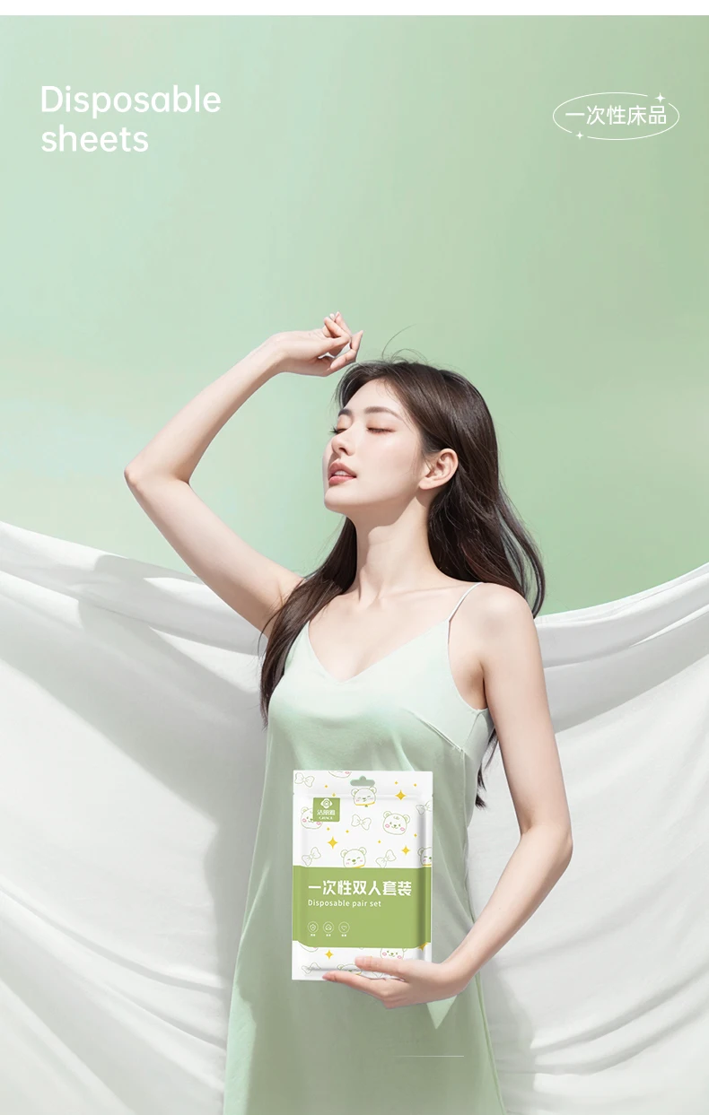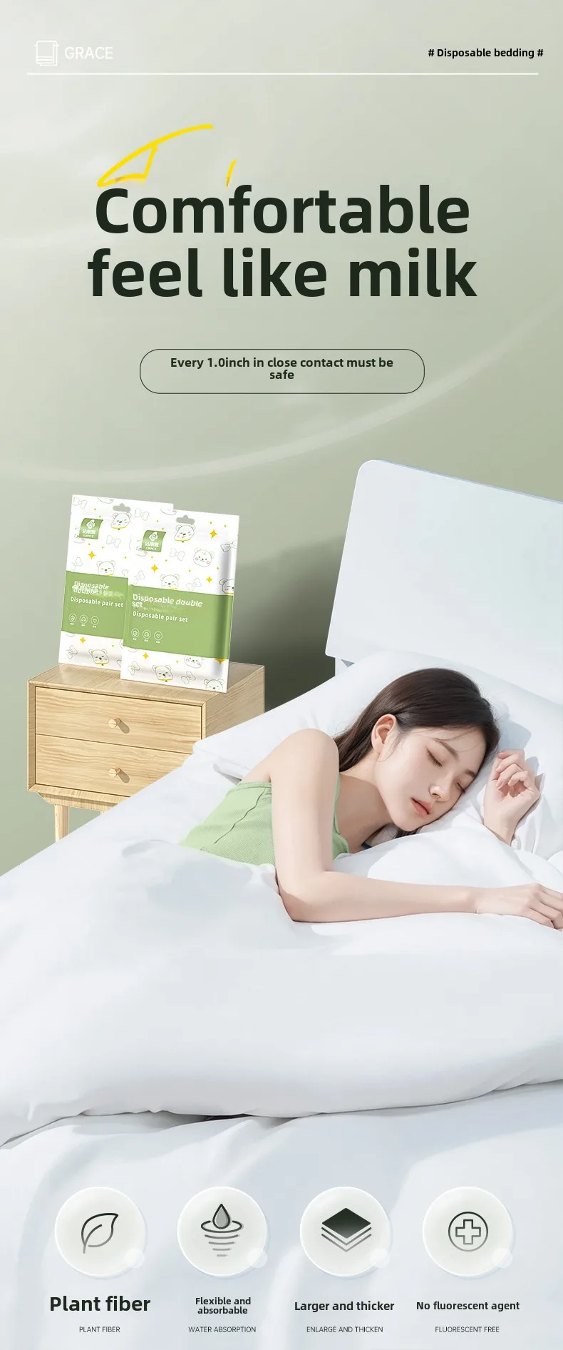 Double Thickened Enlarged Disposable Bed Sheet Set with Pillow Covers 4-Piece Hygienic Bedding for Travel Hospitals and Home Use