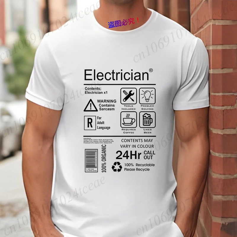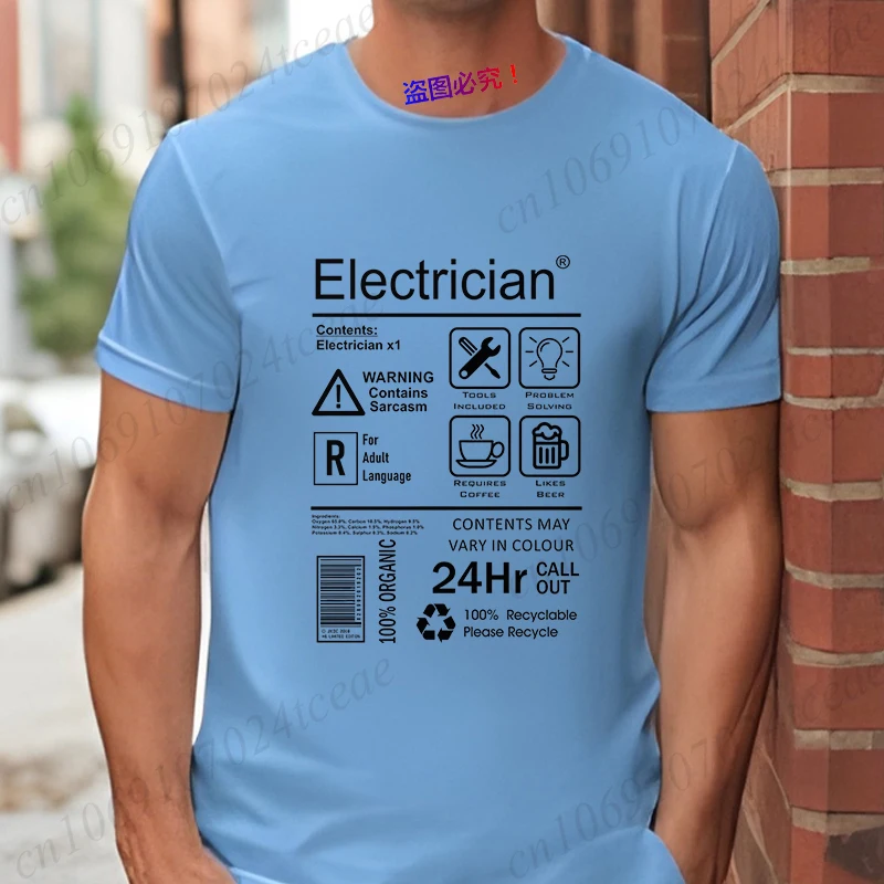 Electrical Engineer Design Tops Fashion Summer Men O-Neck Tees Shirt Funny Electrician Package Care Instructions Print T-shirts