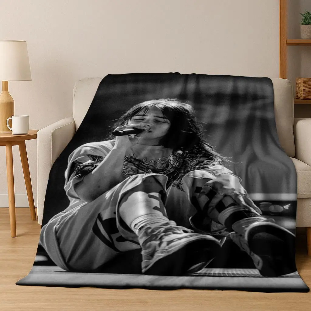 Fashion Billie Eilish Hit Me Hard and Soft Singer Flannel Blanket Soft Throw Blanket for Bed Bedroom Living Room Travel Gift Kid