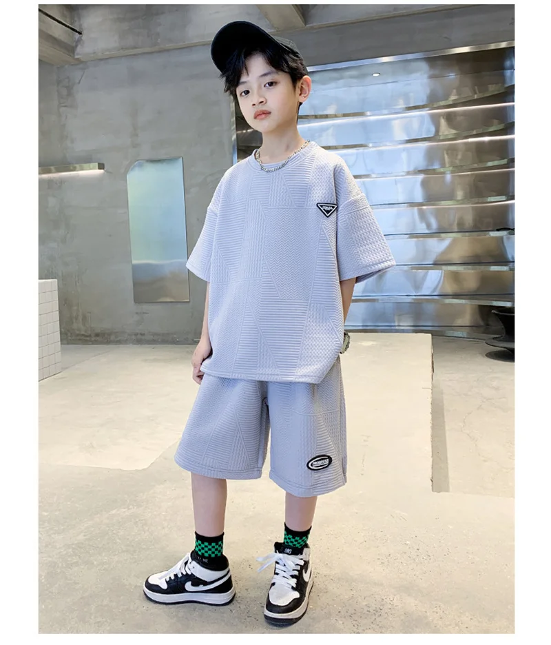 Fashion Boys Summer Sets 2024 New Teenager Casual Outfits Children Trends Clothes Suits Kids Short Sleeves Tops+Baggy Pants 2Pcs