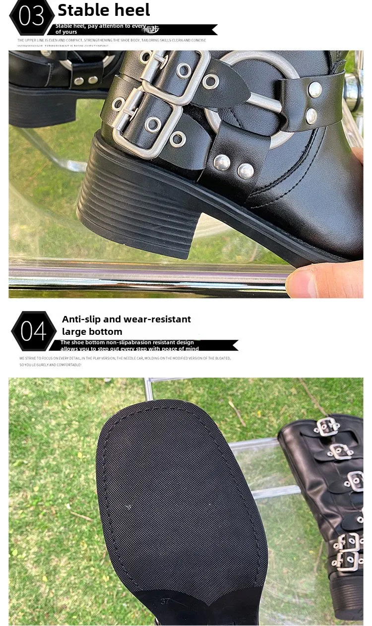 Four Seasons Belt Buckle Retro High Boots Fashion Boots Women's Boots Long Boot Chunky Heel Height Increasing Shoes botas mujer
