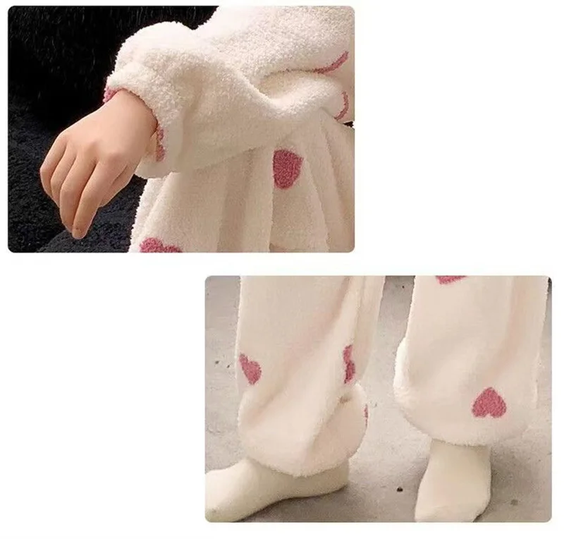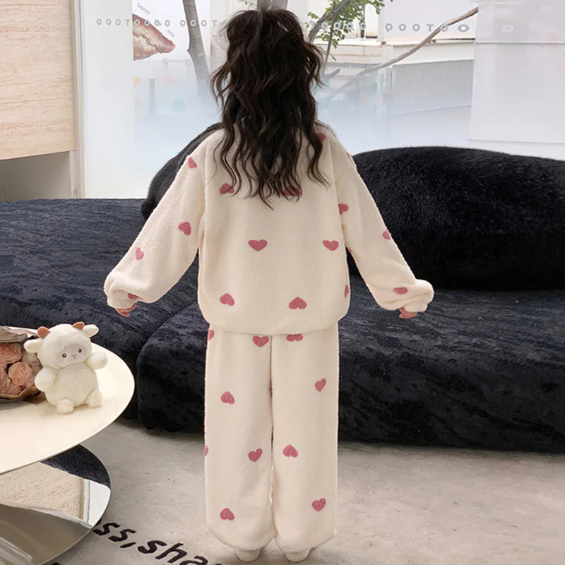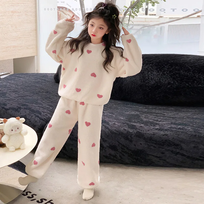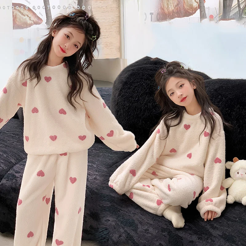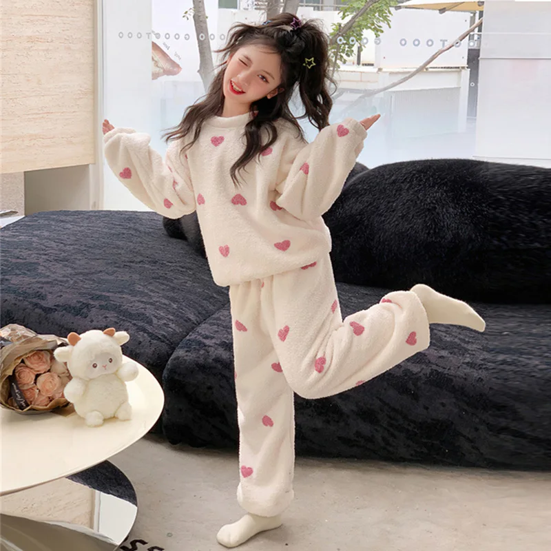 Girls Fleece Suits Kids Warm Padded Pajamas+Pants 2Pcs Outfits Children Autumn Winter Sets Teenager Soft Comfortable Clothing
