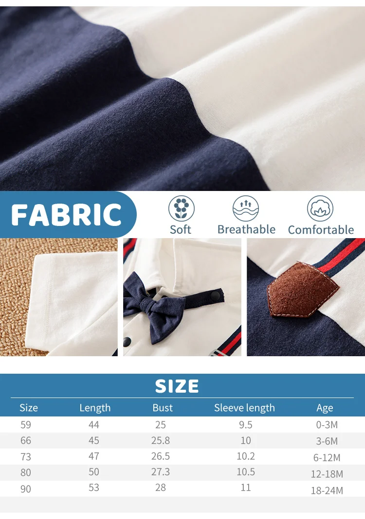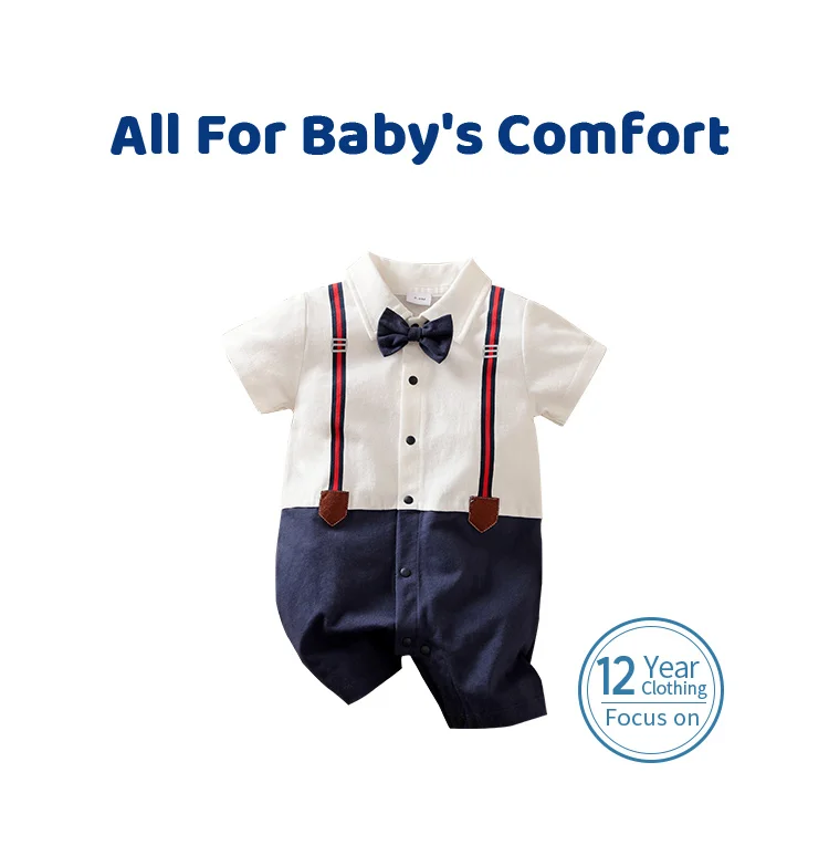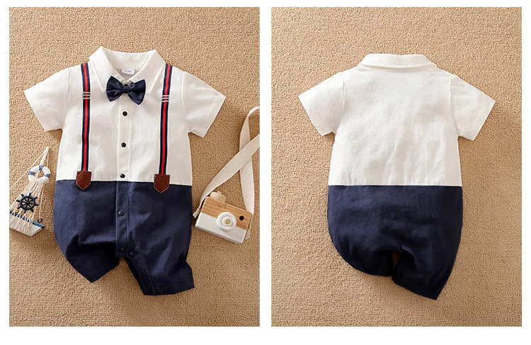 Handsome Jumpsuit Spring and Autumn Baby Boys Suits Cotton Onesie Newborn Toddler Short Sleeve 0-18 months Gentleman Tie Outfit