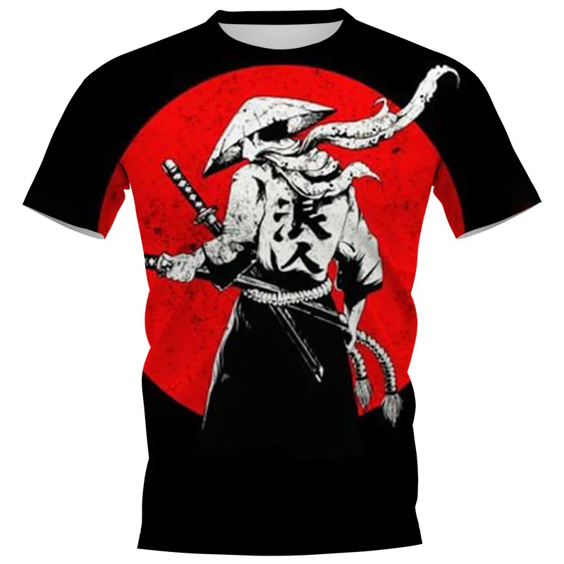 Japan Sakura Samurai Print Men's T Shirt Casual O-neck Short Sleeve Tops Summer Comfortable Breathable Pullover Fashion Clothing