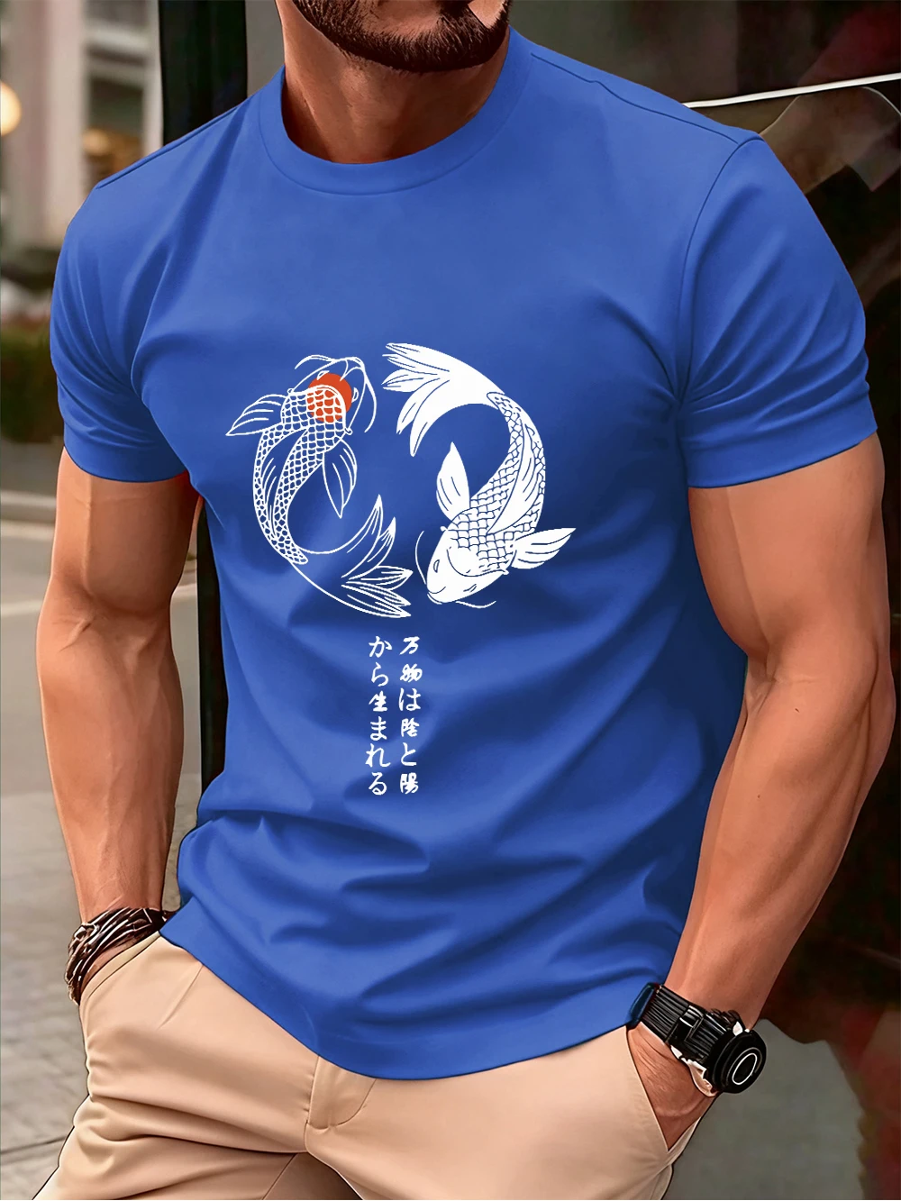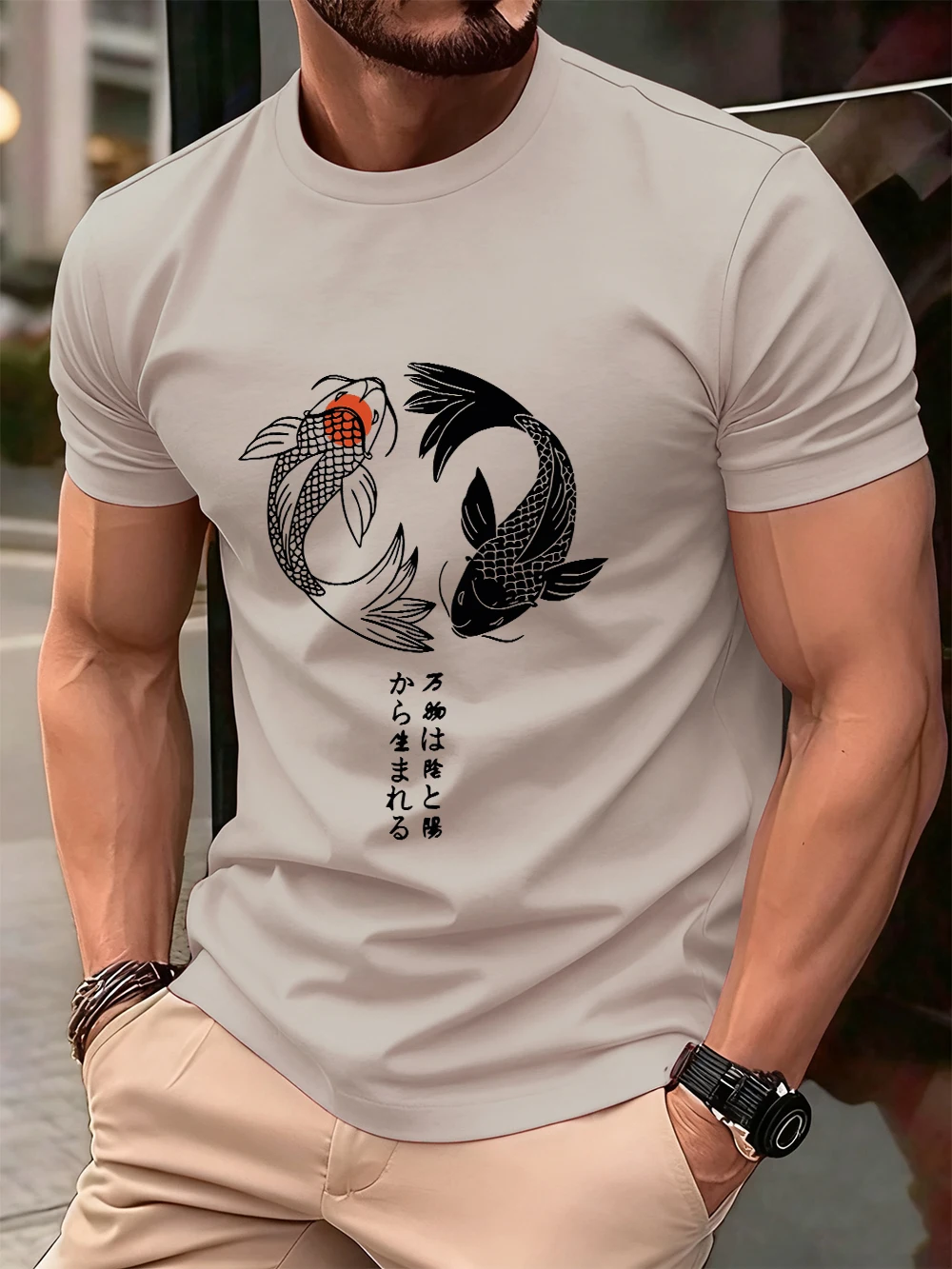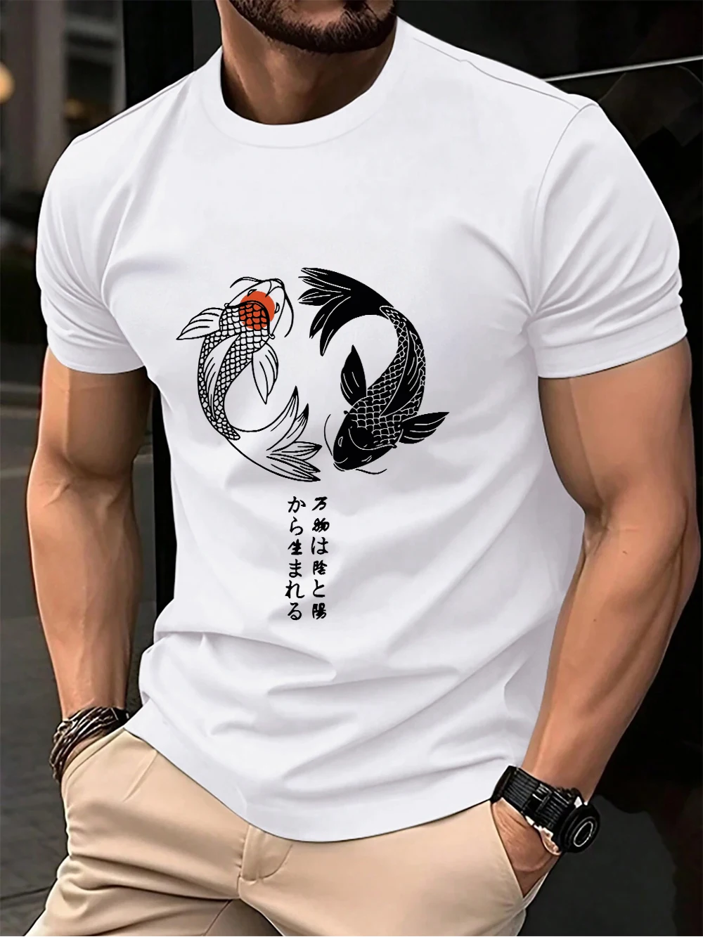 Japanese Koi Harajuku Printing Men T-Shirt Cotton Summer Short Sleeve Tops Soft Oversized O-Neck T Shirt Casual Male Clothes