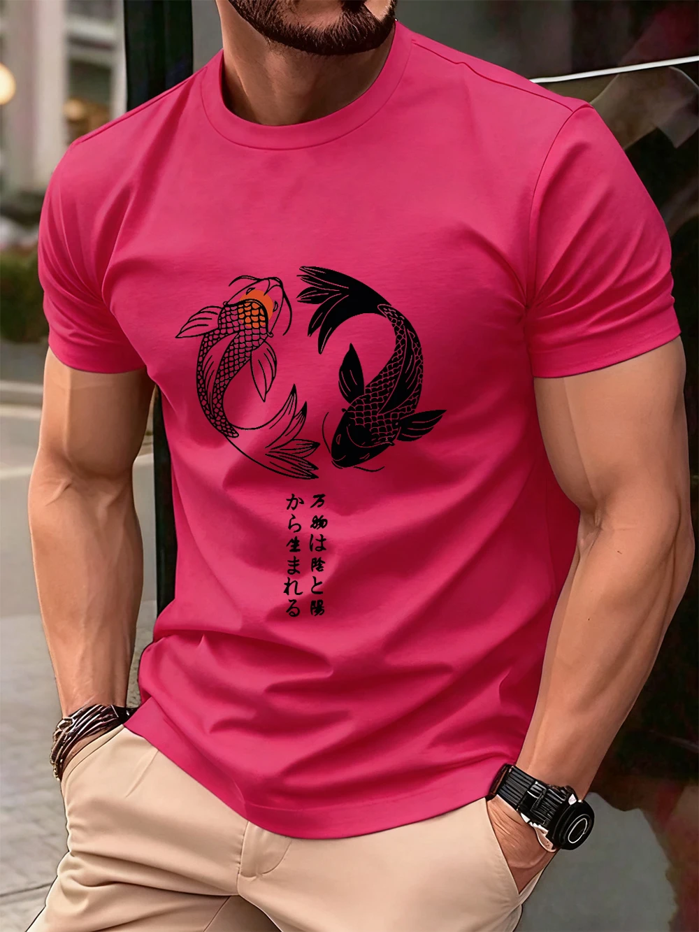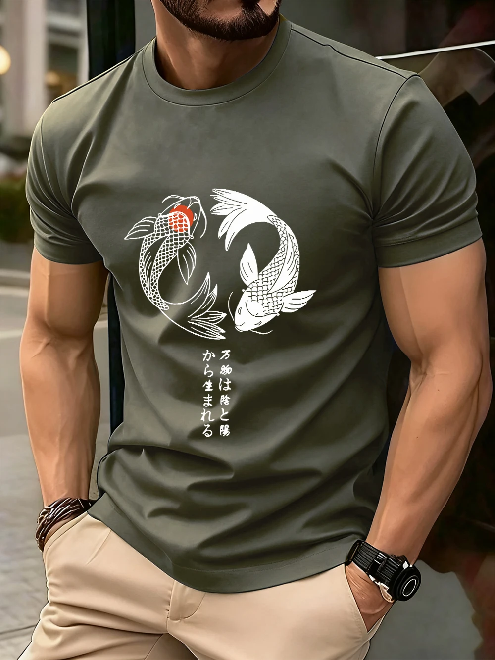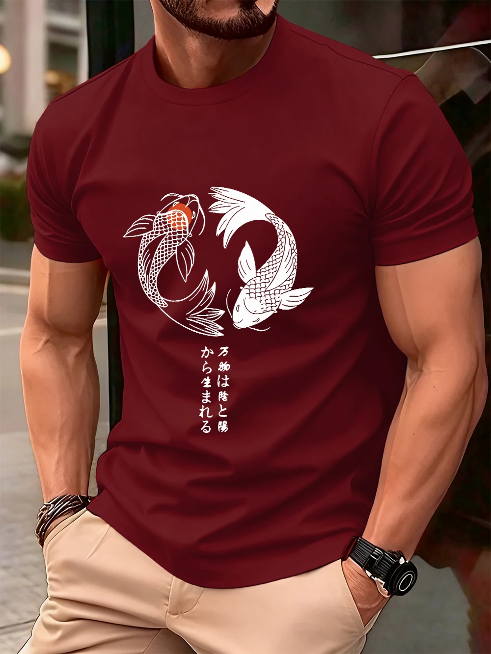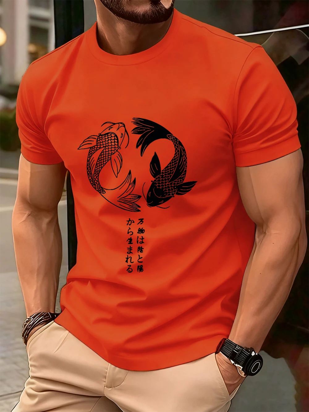 Japanese Koi Harajuku Printing Men T-Shirt Cotton Summer Short Sleeve Tops Soft Oversized O-Neck T Shirt Casual Male Clothes