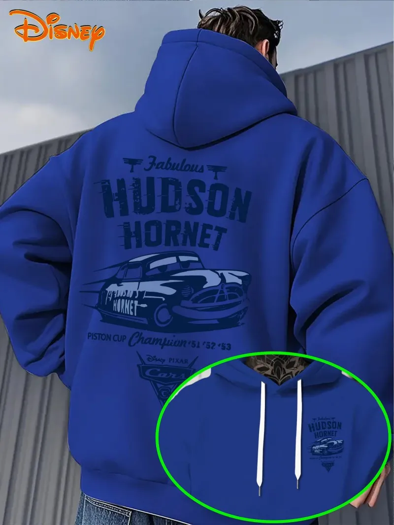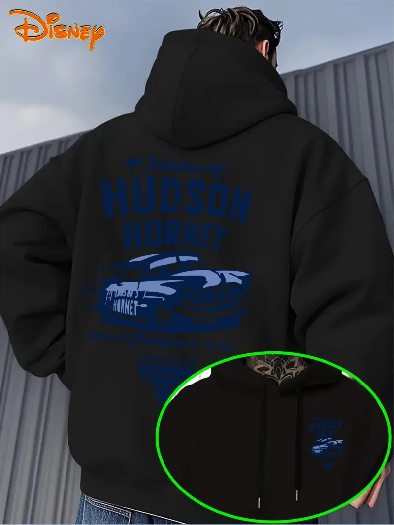 Men's Autumn Hoodie with Lightning McQueen Racing Pattern Pullover Loose Hooded Sweater a Birthday Gift for Cars Movie Fans