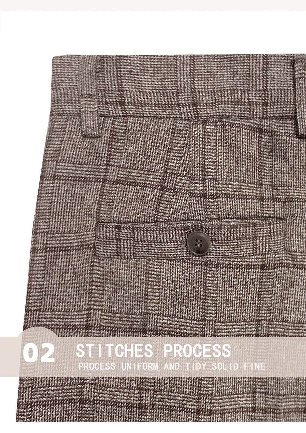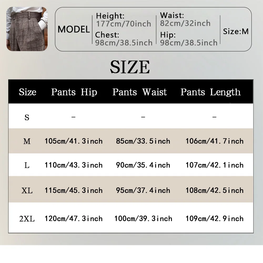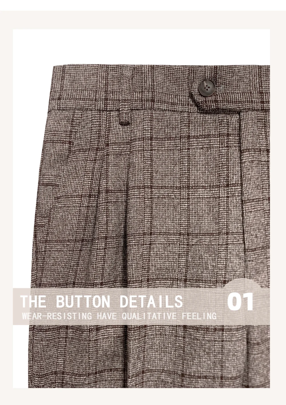 Men's Elegant Neapolitan Woolen Trousers Autumn Winter New Style Slim Fit High Waist Straight Leg Dress Pants with Checkered But