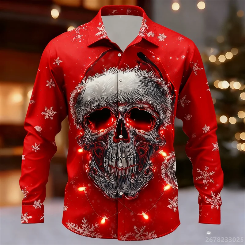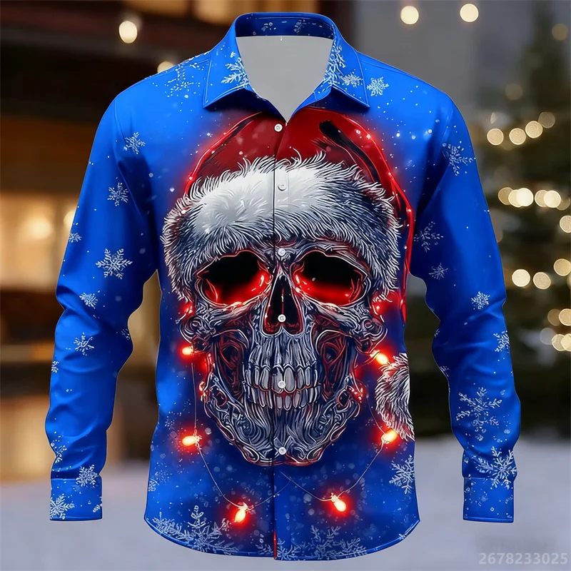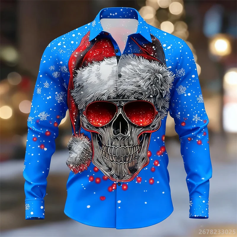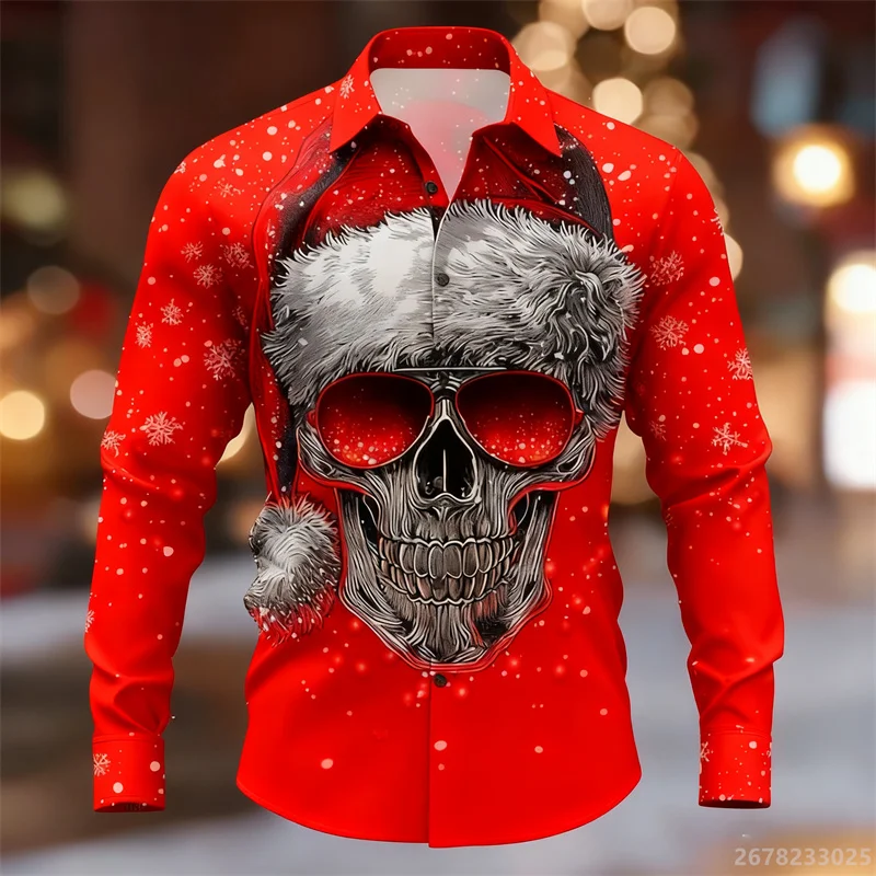 Men's shirt long-sleeved Christmas shirt, 3D printed HD pattern, fashionable casual design, comfortable men's long-sleeved top