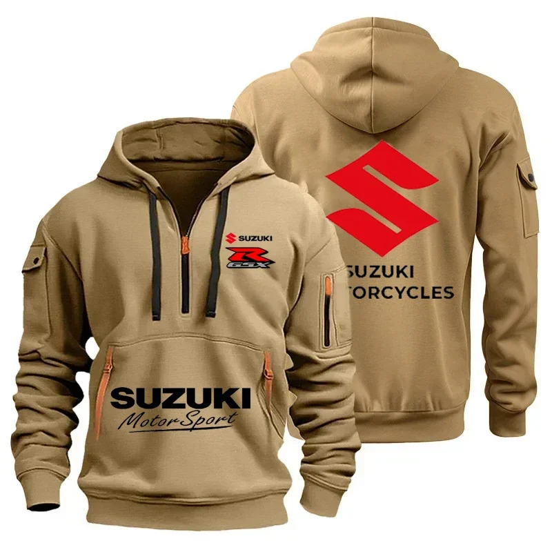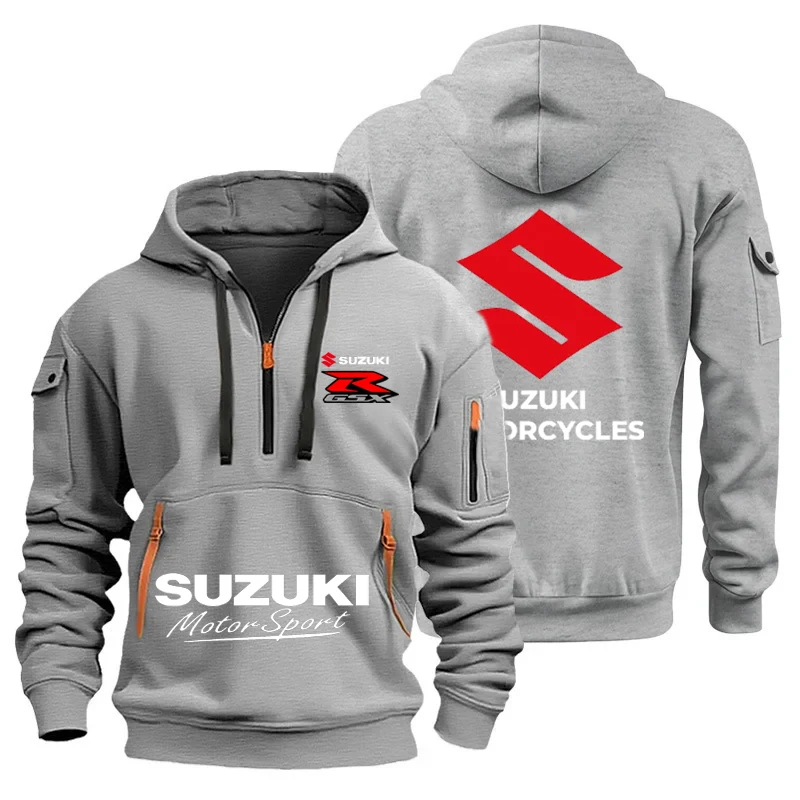 New Suzuki men's hooded sweatshirt for autumn and winter outdoor motorcycle sweatshirt, semi-zipper hooded sweatshirt