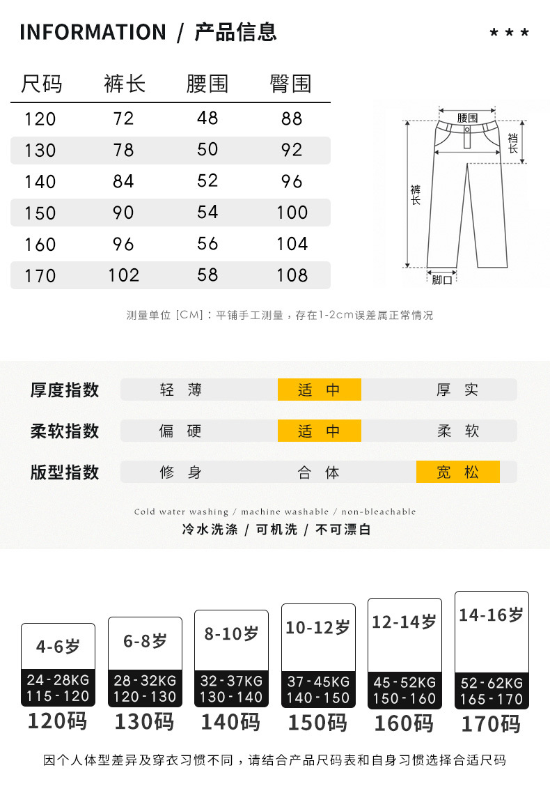 size_info: {"sizeInfoList":[{"length":{"cm":"105-115","inch":"41.34-45.28"},"size":"5Year Size 120","vid":-2},{"length":{"cm":"115-125","inch":"45.28-49.21"},"size":"6 Year Size 130","vid":-3},{"length":{"cm":"125-135","inch":"49.21-53.15"},"size":"7-8 Year Size 140","vid":-4},{"length":{"cm":"135-145","inch":"53.15-57.09"},"size":"9-10 Year Size 150","vid":-5},{"length":{"cm":"145-155","inch":"57.09-61.02"},"size":"11-12 Year Size 160","vid":-6},{"length":{"cm":"155-165","inch":"61.02-64.96"},"size":"13-14 Year Size 170","vid":-7}]}