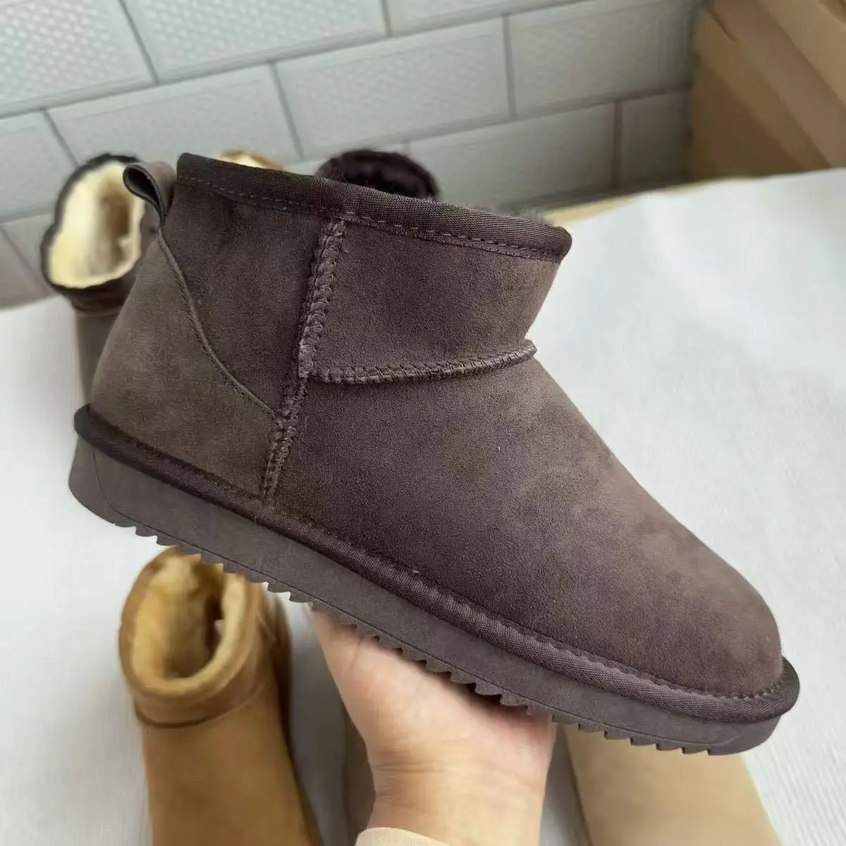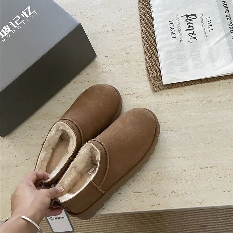 New Women Winter Snow Boots Classic Fur Plush Ankle Snow Boots Outdoor Antiskid Short Boot Warm Fuzzy Home Cotton Shoes