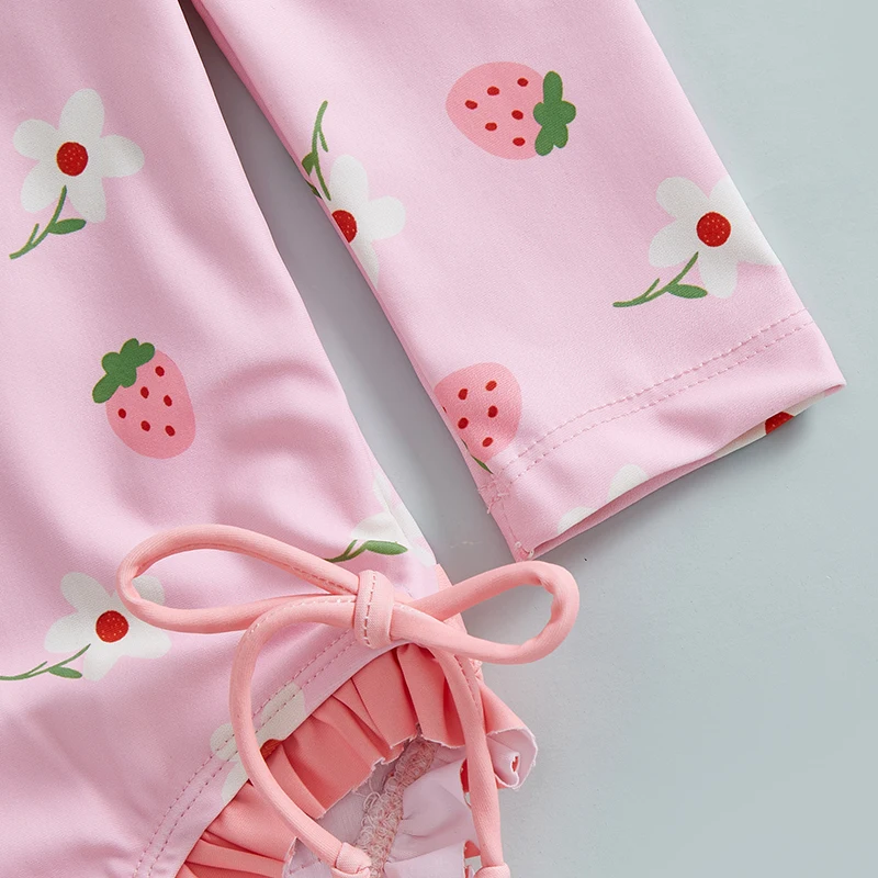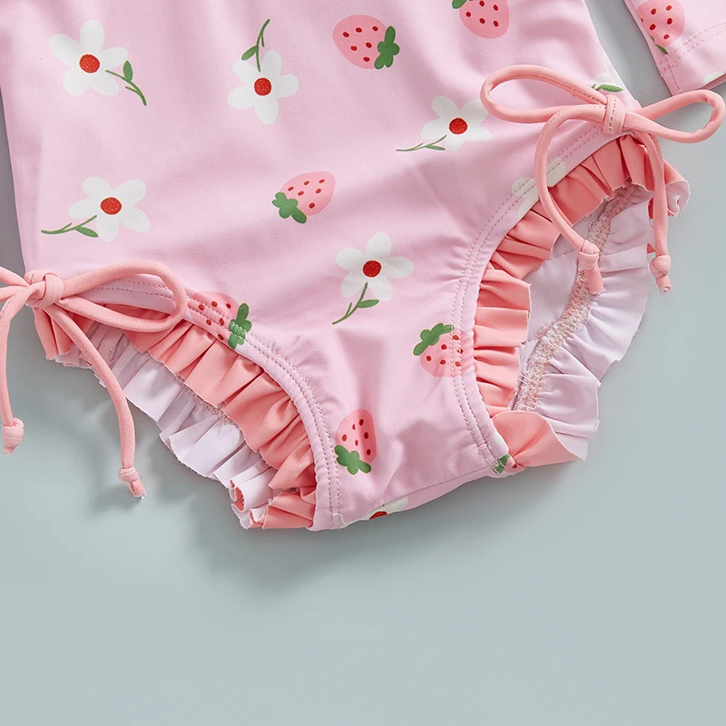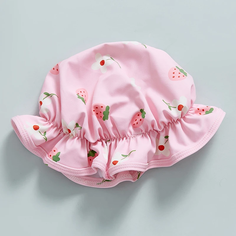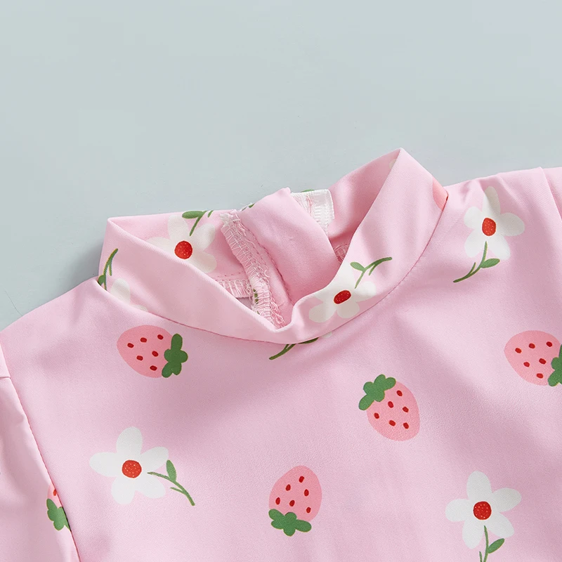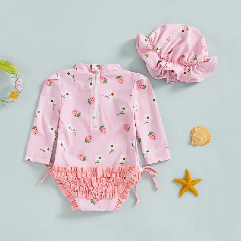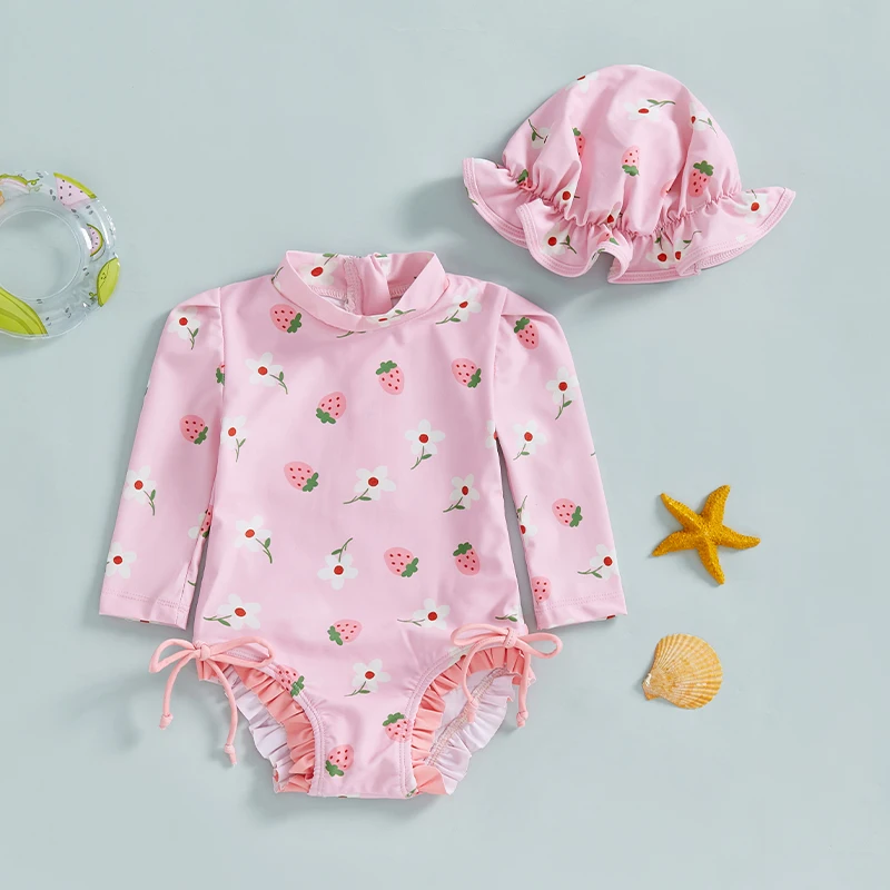 Newborn Baby Girl Swimsuit Summer Adorable Floral/Shell Print Long Sleeve Mock Neck Bathing Suit with Hat Rash Guard Swimwears