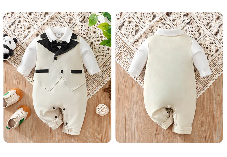 Newborn Clothes Party Gentleman Suit Comfortable Soft Boy And Girl Spring And Autumn Long Sleeved Baby Jumpsuit