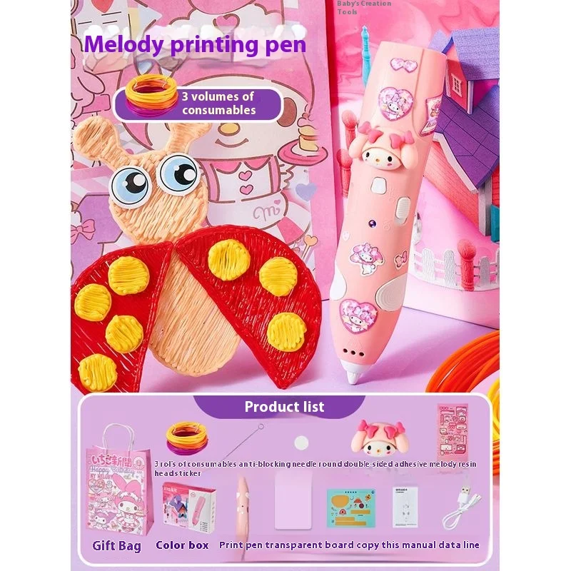 Sanrio Melody Culomi 3d Three-Dimensional Printing Pen Low-Temperature Brush Toy Peripheral Multi-Functional Painting Pen Gifts