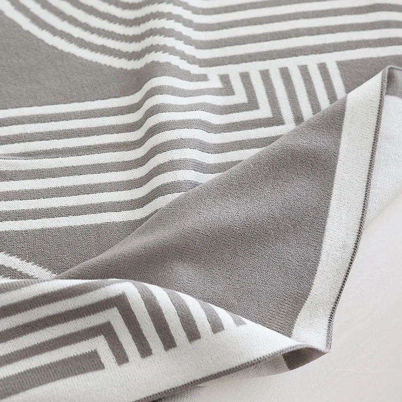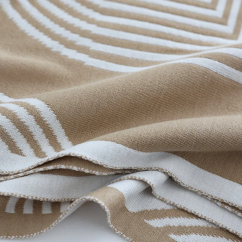 Soft Khaki Knitted Blanket Gray Bedspread Modern Geometric Decorative For Sofa Throw Warm Living Room Bedding Home Decorations