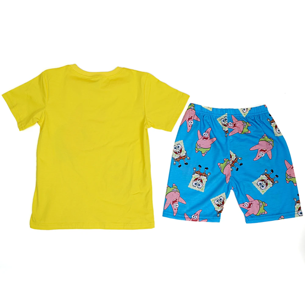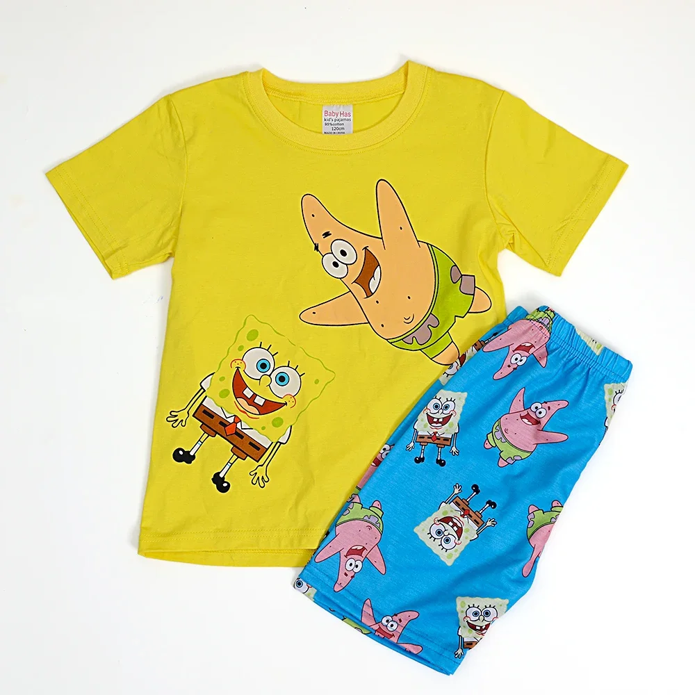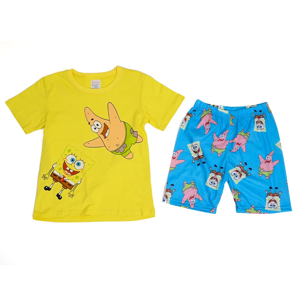 Spongebobs Boys T-shirt Pants Suit Cute Children Clothes 2pcs Set Summer Short Sleeve Tee Shorts